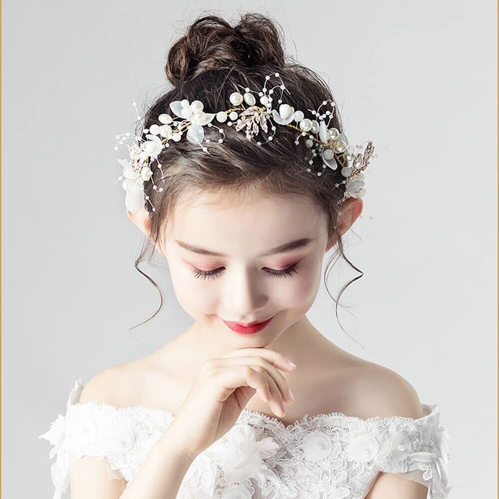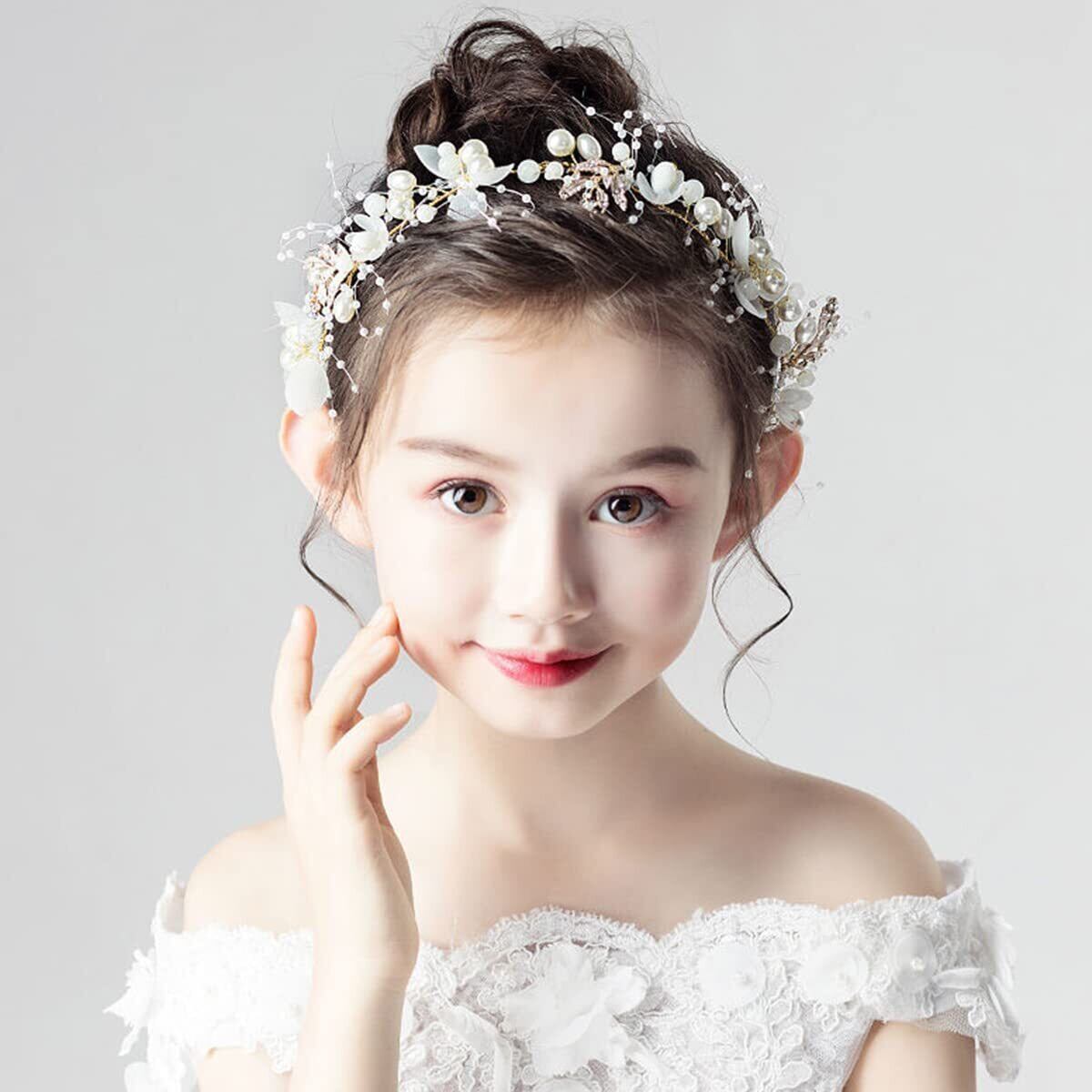 サムコス 髪飾り ヘアバンド カチューシャ 花冠 クラウン 女の子 子供ヘッドドレス ヘアアクセサリー 結婚式/披露宴/卒業式/入学式/パーティー/ダンス/和装/撮影 (クラシックパール ホワイト)