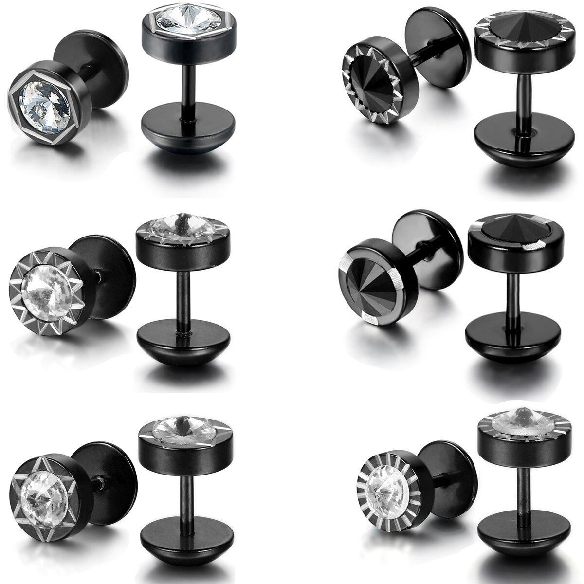 Aroncent ピアス メンズ 両耳 メンズ ピアス 片耳 ピアス ペア ブラック 人気 ステンレス ユニセックス ファション ゴシック ゴスロリ パンク系 アクセサリー(6ペア12点セット)