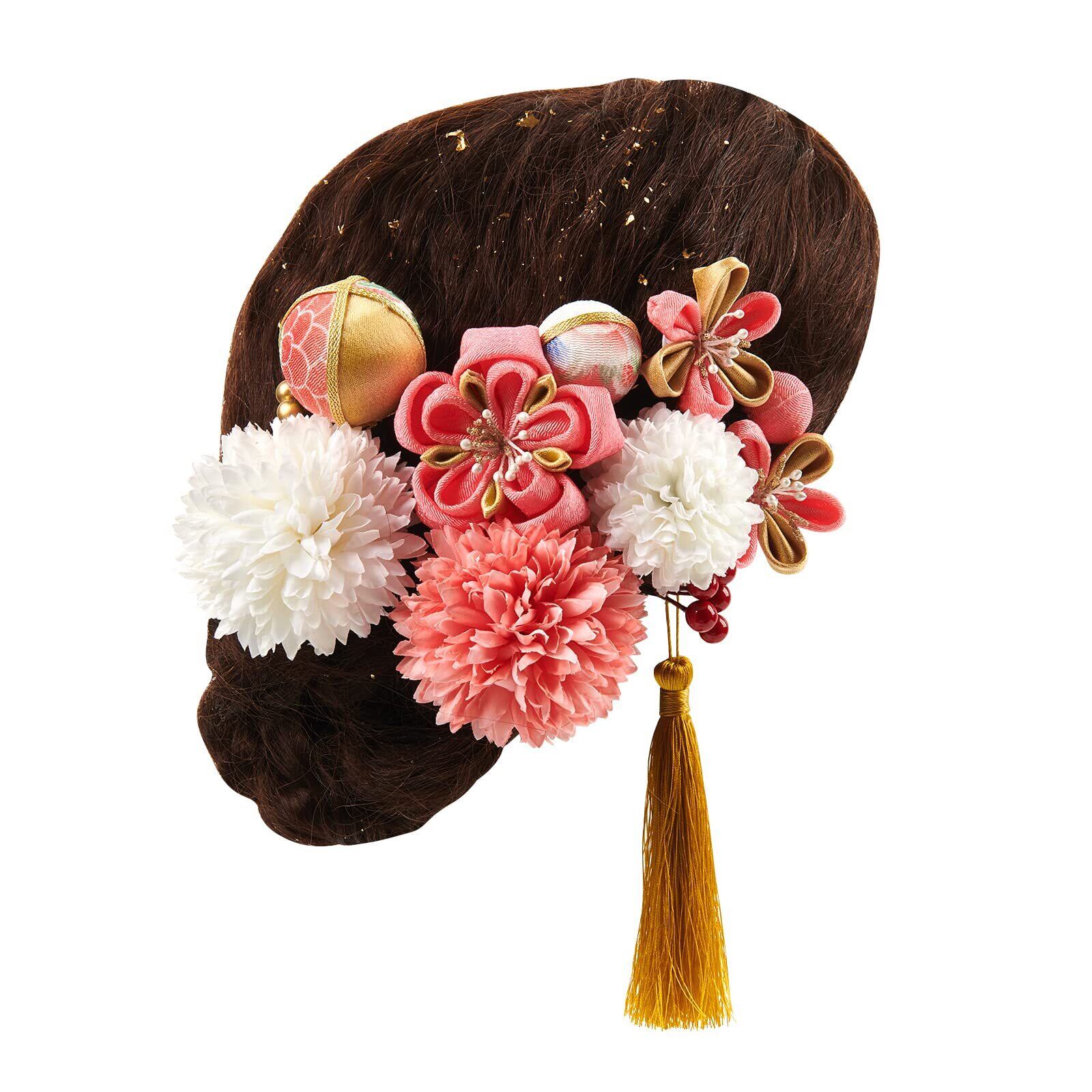 【髪飾り用途】お花の髪飾りです。成人式の髪飾りは前撮りに最適。夜会巻き、アップヘア、サイドアップ、お団子、編み込みなど人気のまとめ髪の補助やアクセントにオススメです。大人の方は結婚式、パーティー、謝恩会、成人式、卒業式など華やかなお席の和装、振袖姿や浴衣のコーディネートにぴったりします。お正月、お祝い事、桃の節句、七五三、卒園式などにオススメです。