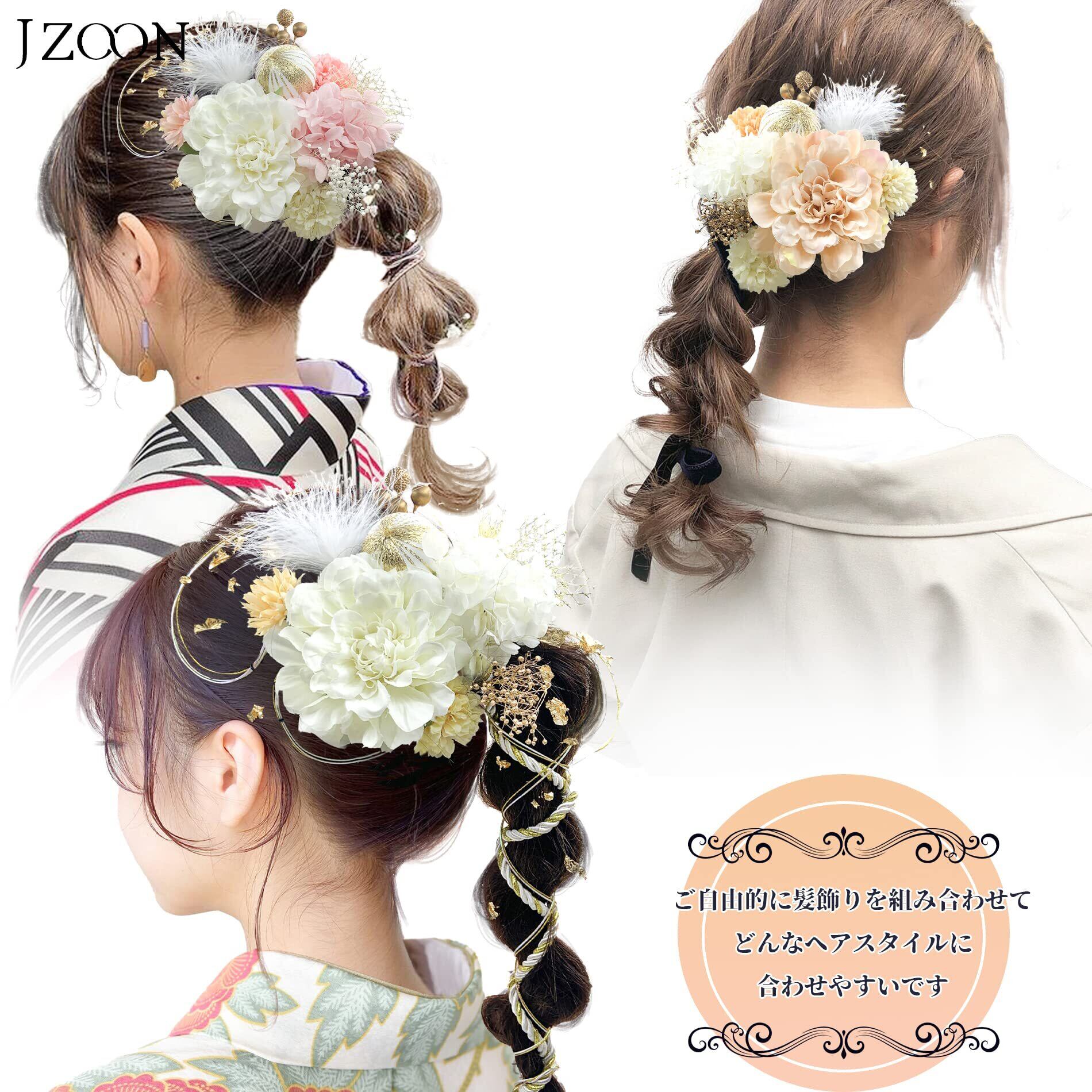 使用場面:結婚式、成人式、花火大会、卒業式、お祭りなどでの着物や浴衣にピッタリ!各パーツがUピン付きで、自由にアレンジできます。