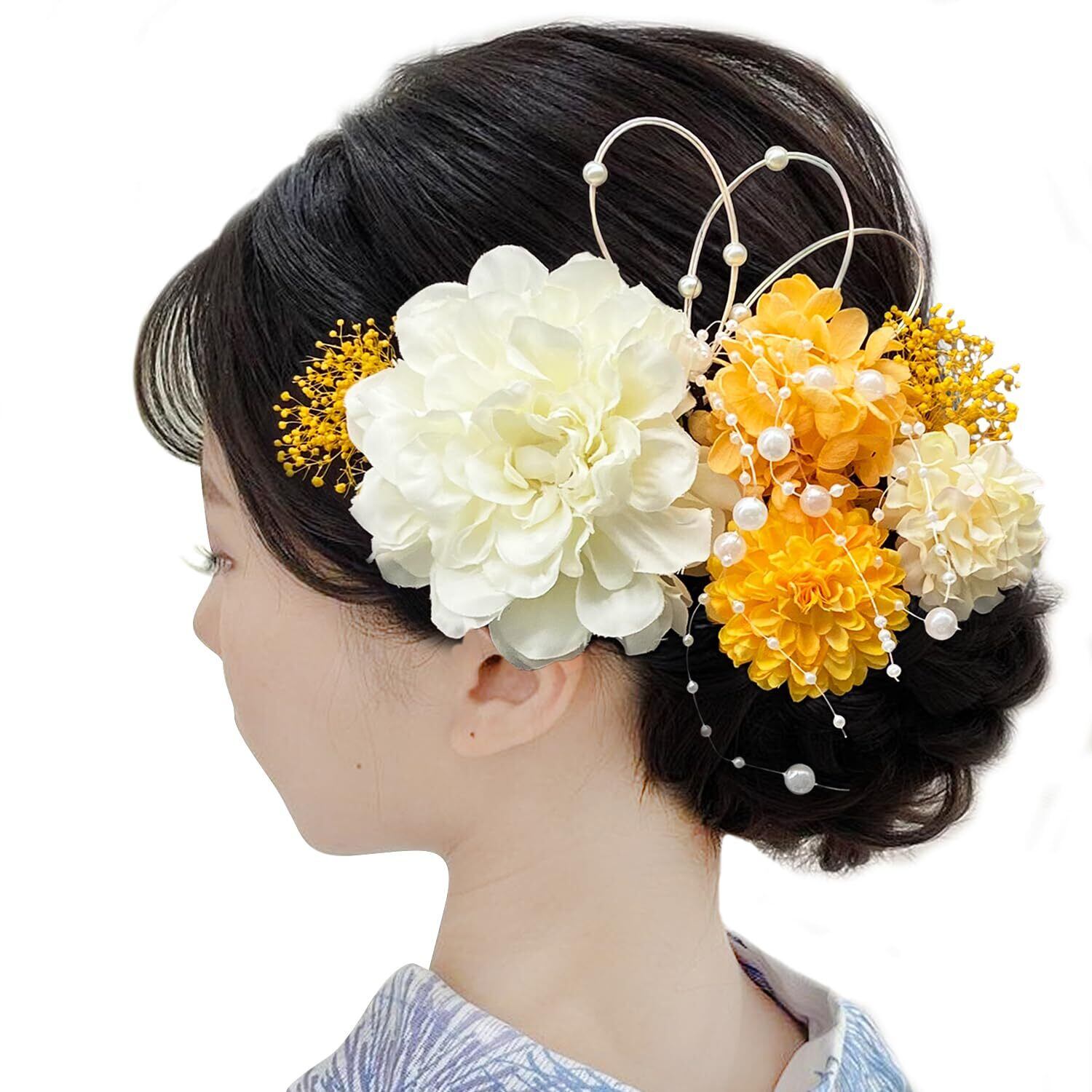 Baramoly 髪飾り ダリア 和装 着物 浴衣 プリザーブドフラワー 造花 花飾り 祭り 花火大会 成人式 結婚式 卒業式 七五三 ウエディング 謝恩会 かわいい 簡潔 髪留め