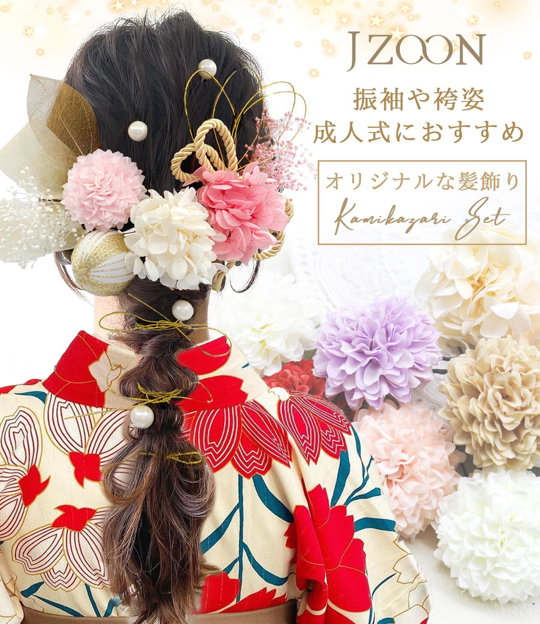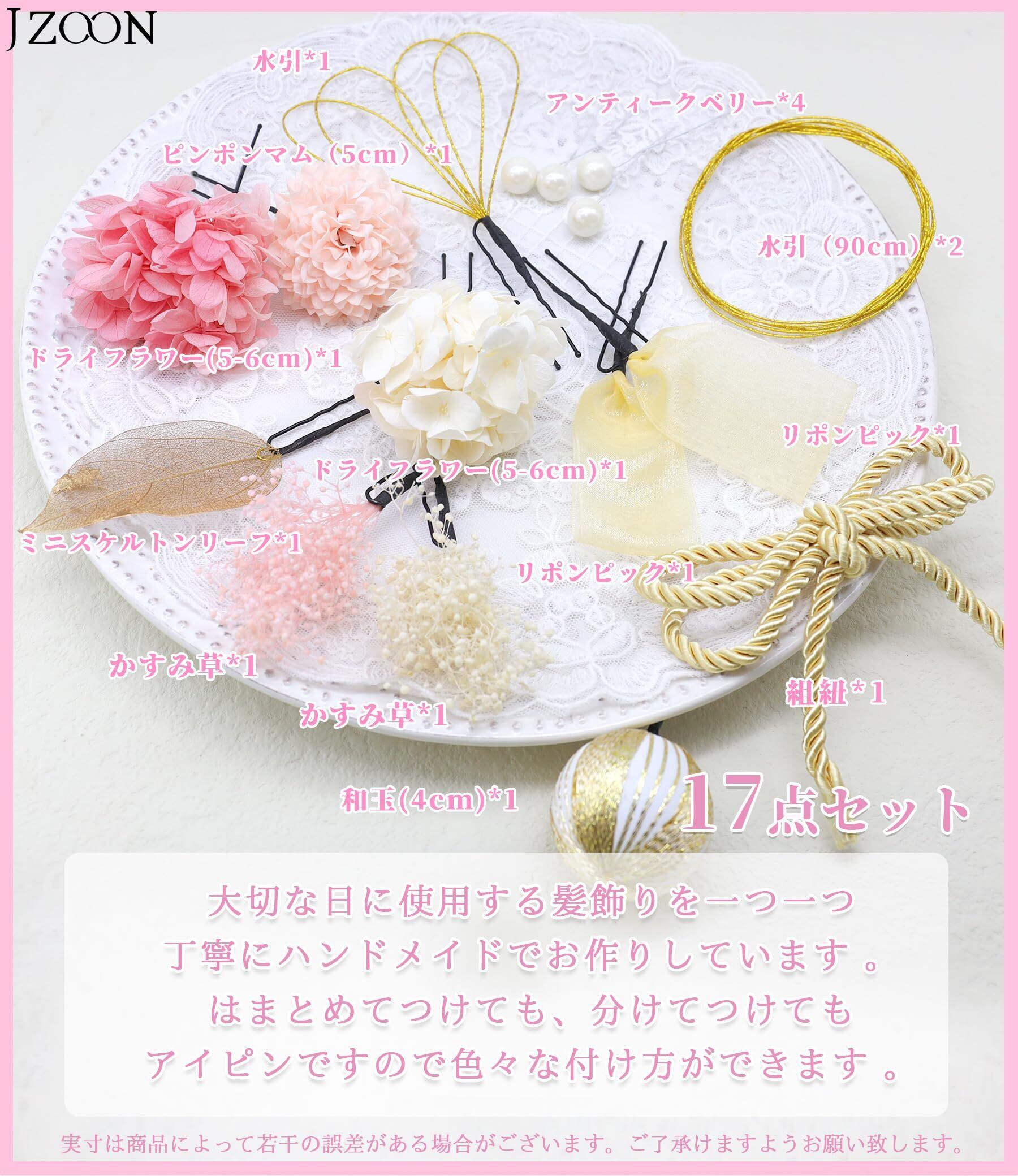 [JZOON] 成人式 髪飾り ドライフラワー 【8色展開 】 卒業式 振袖 着物 袴 和装 花 紐 結婚式 ゴールド 赤 白 金箔 葉 A15700