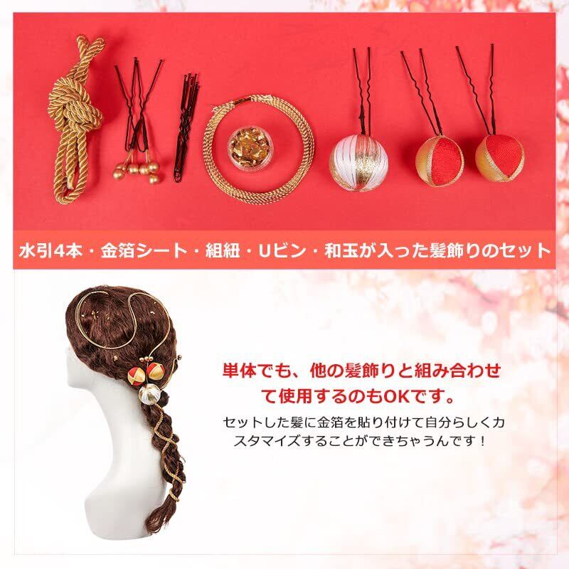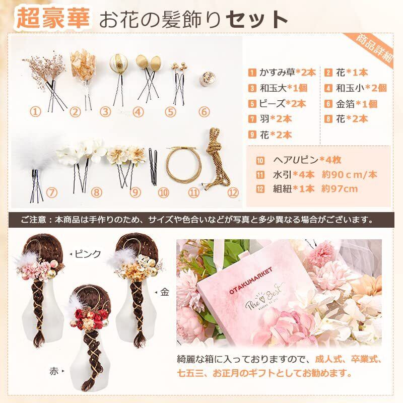 [OTAKUMARKET] 髪飾り 成人式 振袖 金箔 羽 水引 花 セット 七五三 袴 着物 髪 飾り 和装 卒業式 浴衣 結婚式 髪 飾り 髪留め コーム ヘアアクセサリー