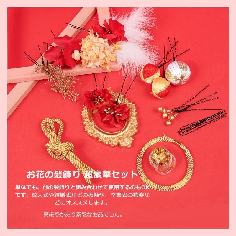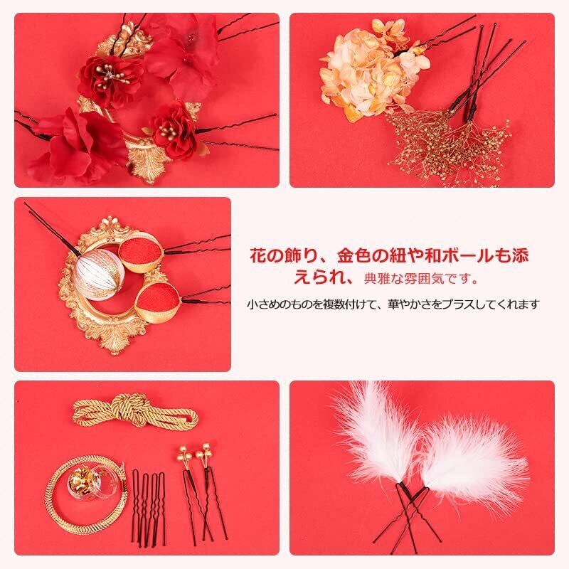【和装髪飾りセット内容】髪飾セット。Uピン仕様の髪飾りは簡単に取り付けられやすいです。ピンは曲げることも出来ます。小さめのものを複数付けて、どの方向から写真を撮っても映えるようにするのも可愛いですね。綺麗に梱包しますので、新年、誕生日、クリスマス、バレンタインデーギフトとしてお勧めます。浴衣や着物などの和服だけでなく、普段使いにも便利な一本タイプです。