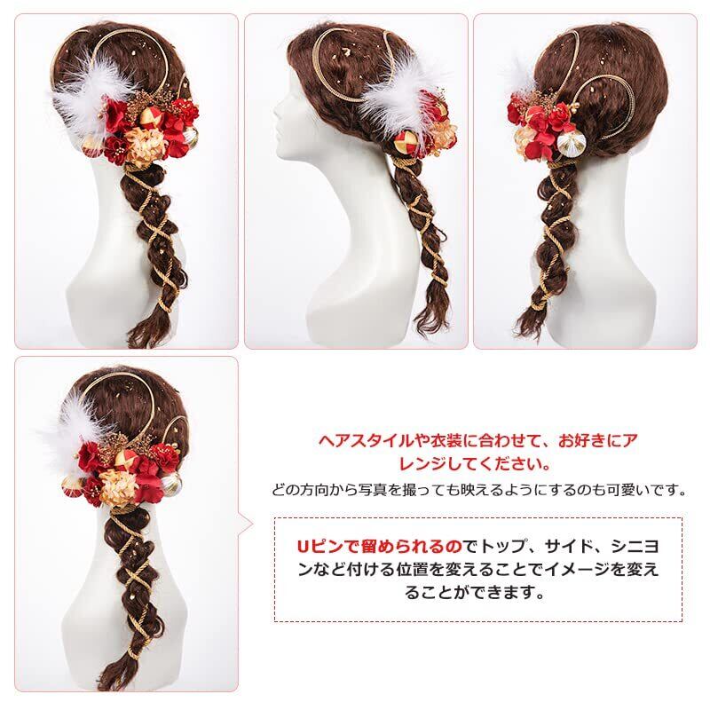 【髪飾り用途】お花の髪飾りです。成人式の髪飾りは前撮りに最適。夜会巻き、アップヘア、サイドアップ、お団子、編み込みなど人気のまとめ髪の補助やアクセントにオススメです。大人の方は結婚式、パーティー、謝恩会、成人式、卒業式など華やかなお席の和装、振袖姿や浴衣のコーディネートにぴったりします。お正月、お祝い事、桃の節句、七五三、卒園式などにオススメです。