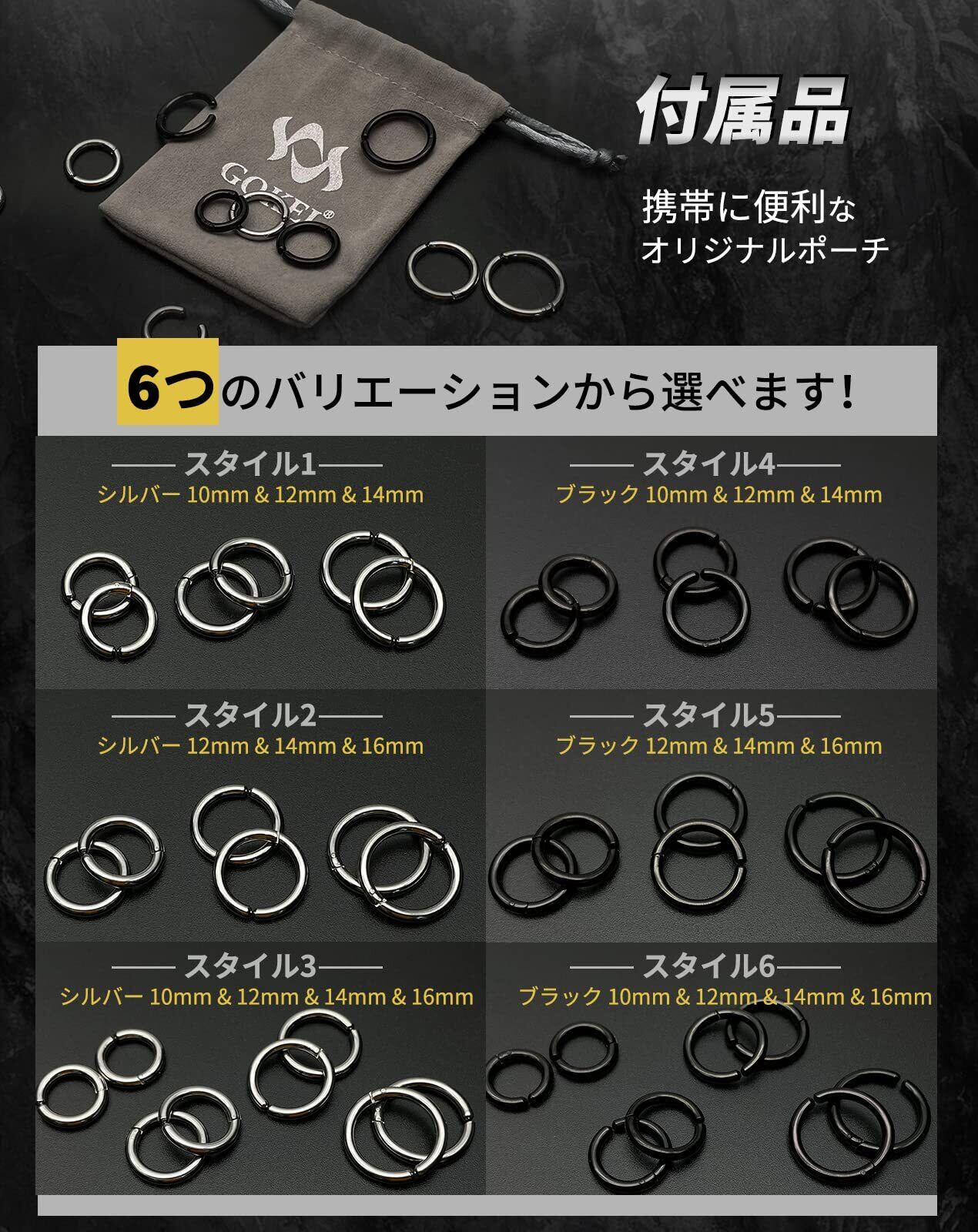 【選べる4サイズ】リング内径は約10mm,12mm,14mm,16mmサイズ(外径は約15mm,17mm,19mm,21mm)からお選びいただけます。フープ幅:約2.5mm 幅約2.5mm幅の華奢で美しい、繋ぎ目の見えない太いフープピアス風です。わっか状のシンプルなデザイン、豊富なサイズで、自分にあったサイズが見つかる!大人シンプルスタイルに一点投入で全体のバランスが整います。メンズでもレディースでも使えるおしゃれなノンホールピアスです。