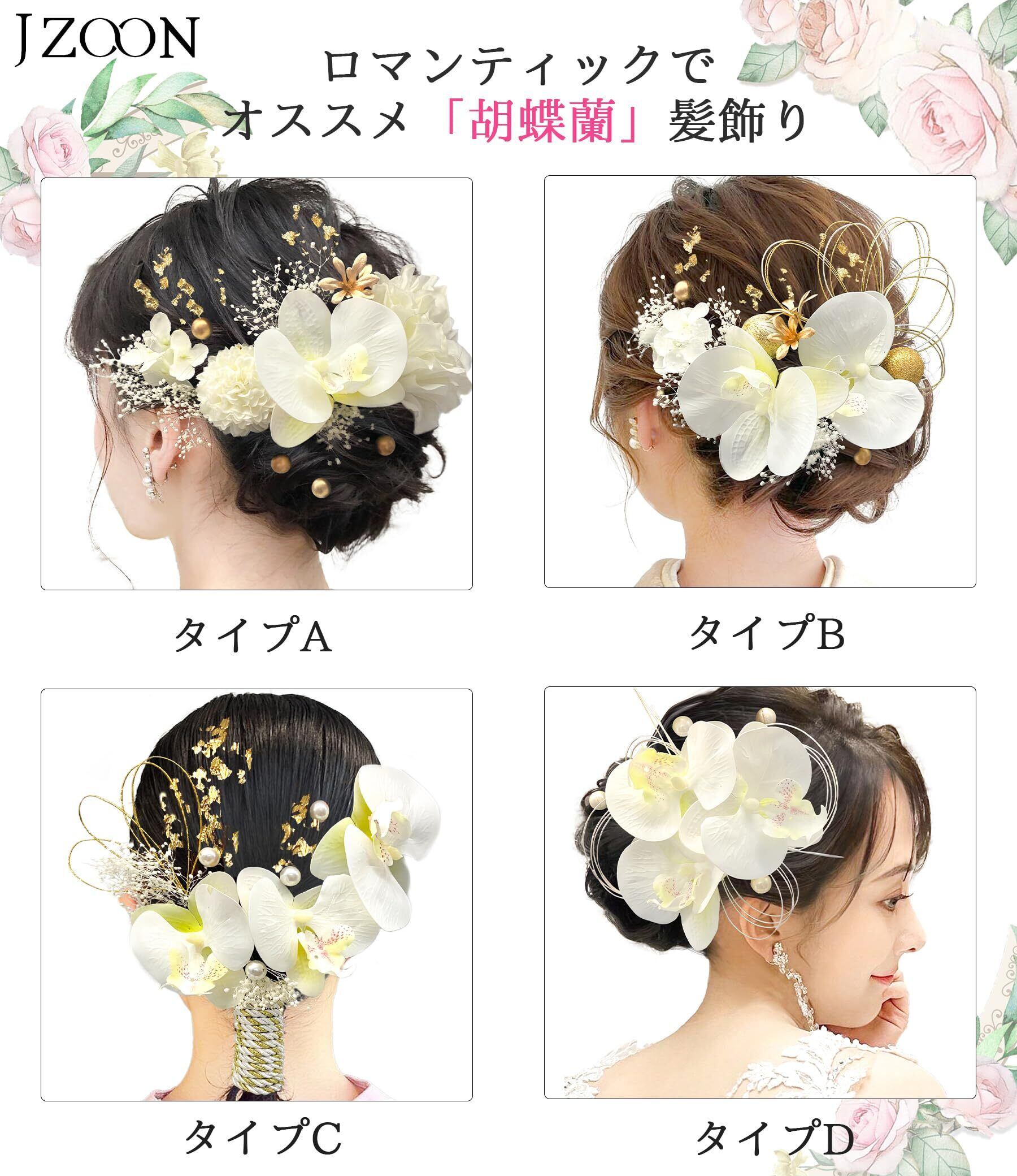 [JZOON] 髪飾り【4タイプ展開】 胡蝶蘭 コチョウラン 成人式 七五三 浴衣 袴 着物 飾り 振袖 和装 卒業式 結婚式 ウェディング ダリア 花 かわいい X1101
