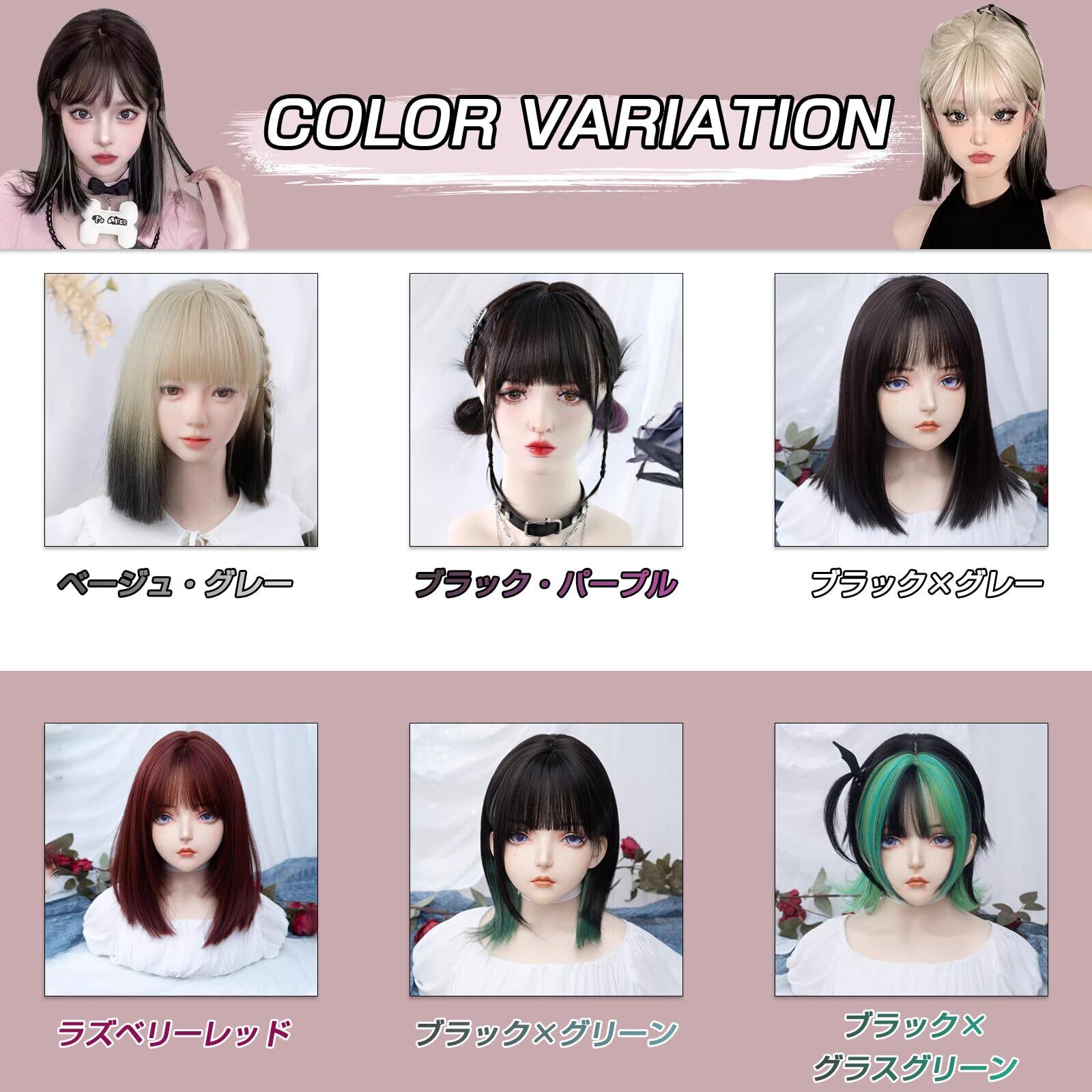 スタイルウィッグ セミロング ロング フルウイッグ インナーカラー かつら ストレート ミディアム ウィッグ レディース ボブウィッグ カツラ かつら wig 女性用 女装 ウィッグ ぱっつん前髪 ワンカール ロリータ コスプレ 小顔 可愛い ハロウィン 原宿系 wig ファッション 日常 耐熱 ネット/櫛付き
