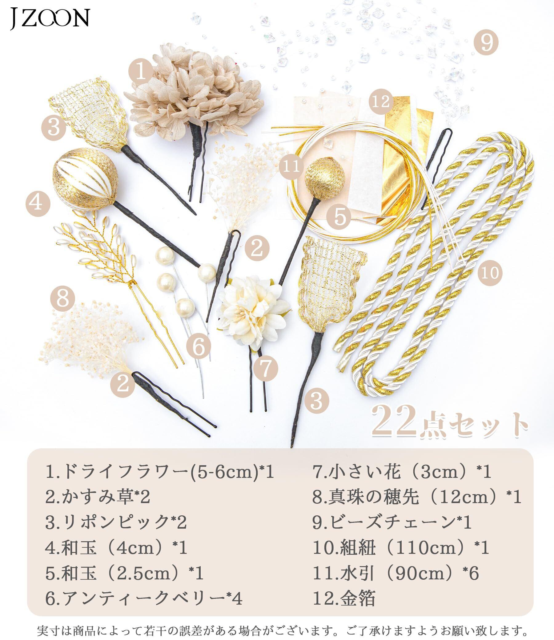 [JZOON] 髪飾り 9色展開 成人式 髪飾り ドライフラワー 袴 卒業式 和装 結婚式 振袖 プリザーブドフラワー 金箔 紐アレンジ 水引 和玉 A1600