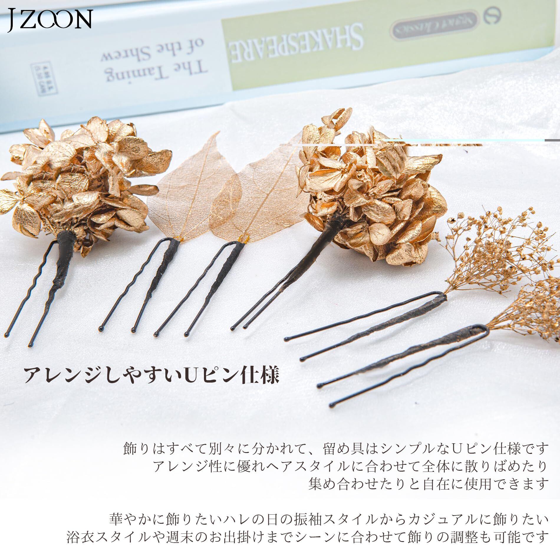 [JZOON 髪飾り] 成人式 ドライフラワー 水引 金箔 銀箔 カスミソウ 組紐 人気 ロープ ヘアアクセサリー 前撮り 振袖 卒業式 結婚式 和装 袴 着物 浴衣 ブライダル 花嫁 ヘッドパーツ ゴールドピン ゴールド葉っぱ