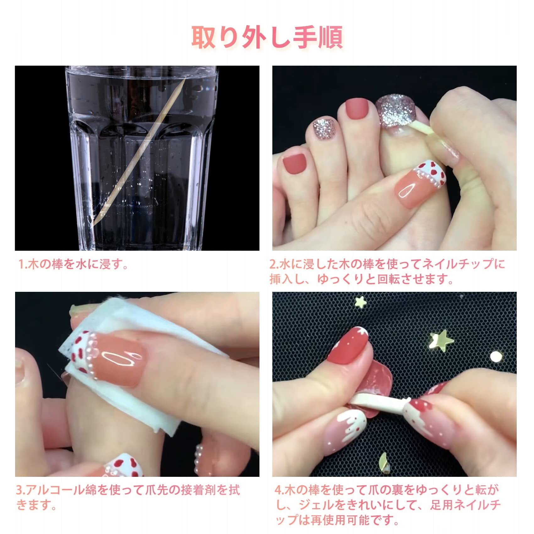 【複数の用途】あなたをより美しく、ネイルチップ足はパーティー、休日、デート、写真、成人式、卒業式、披露宴、結婚式、ハロウィーン、クリスマス、バレンタインデーなどに最適で、幅広く様々な場面でご利用頂けます。また、ガールフレンド、家族、友人への素晴らしい贈り物です。