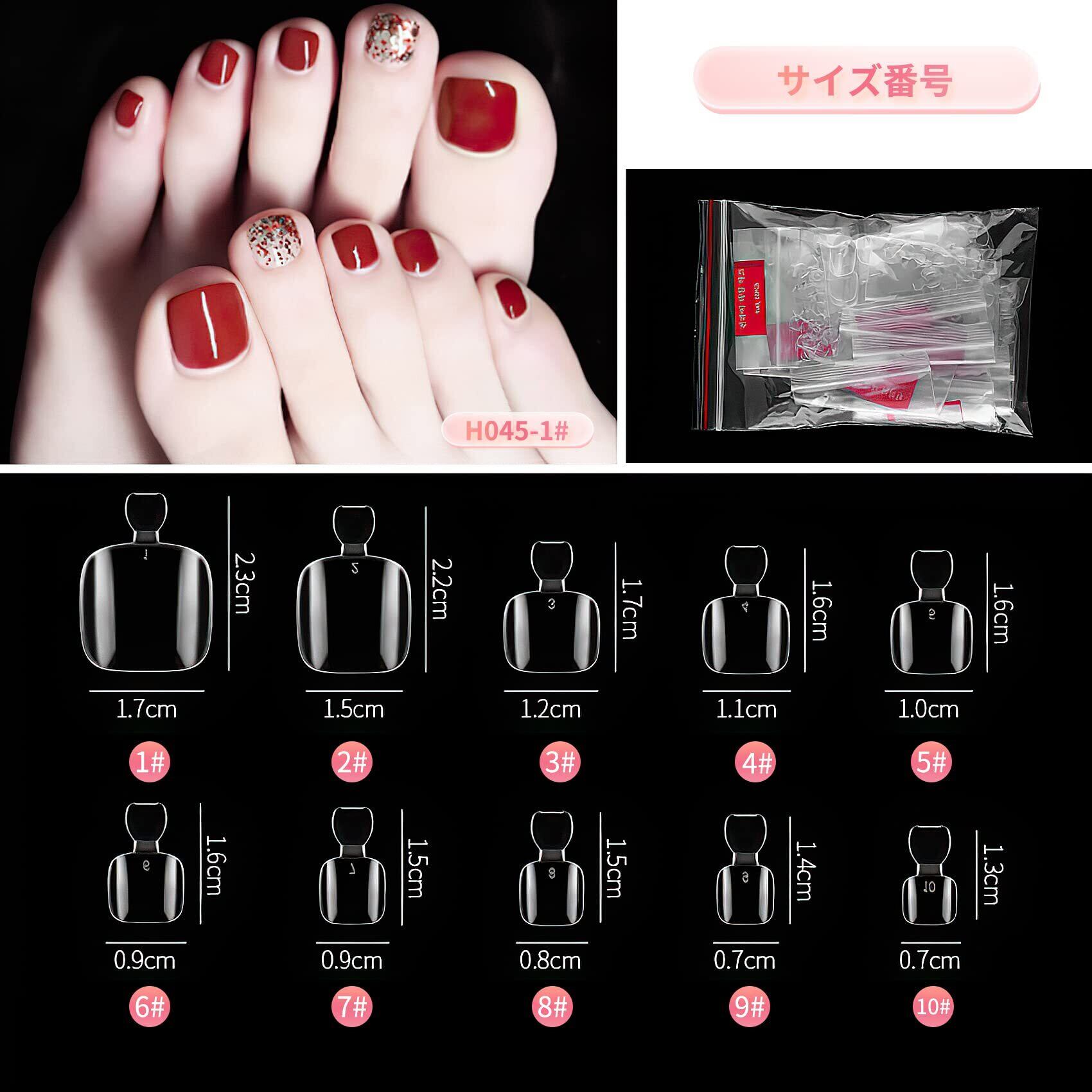 【 大容量でコスパ抜群! 】 本製品の脚用ネイルチップは10サイズの合計500個入りになりますので、紛失や不足の心配なく、安心してご利用頂けます。又は足の爪用ネイルチップはクリアカラーでシンプルなデザインを採用することにより、不要なデザインで余計なコストをかけずに、コストを抑えることが可能になりました。