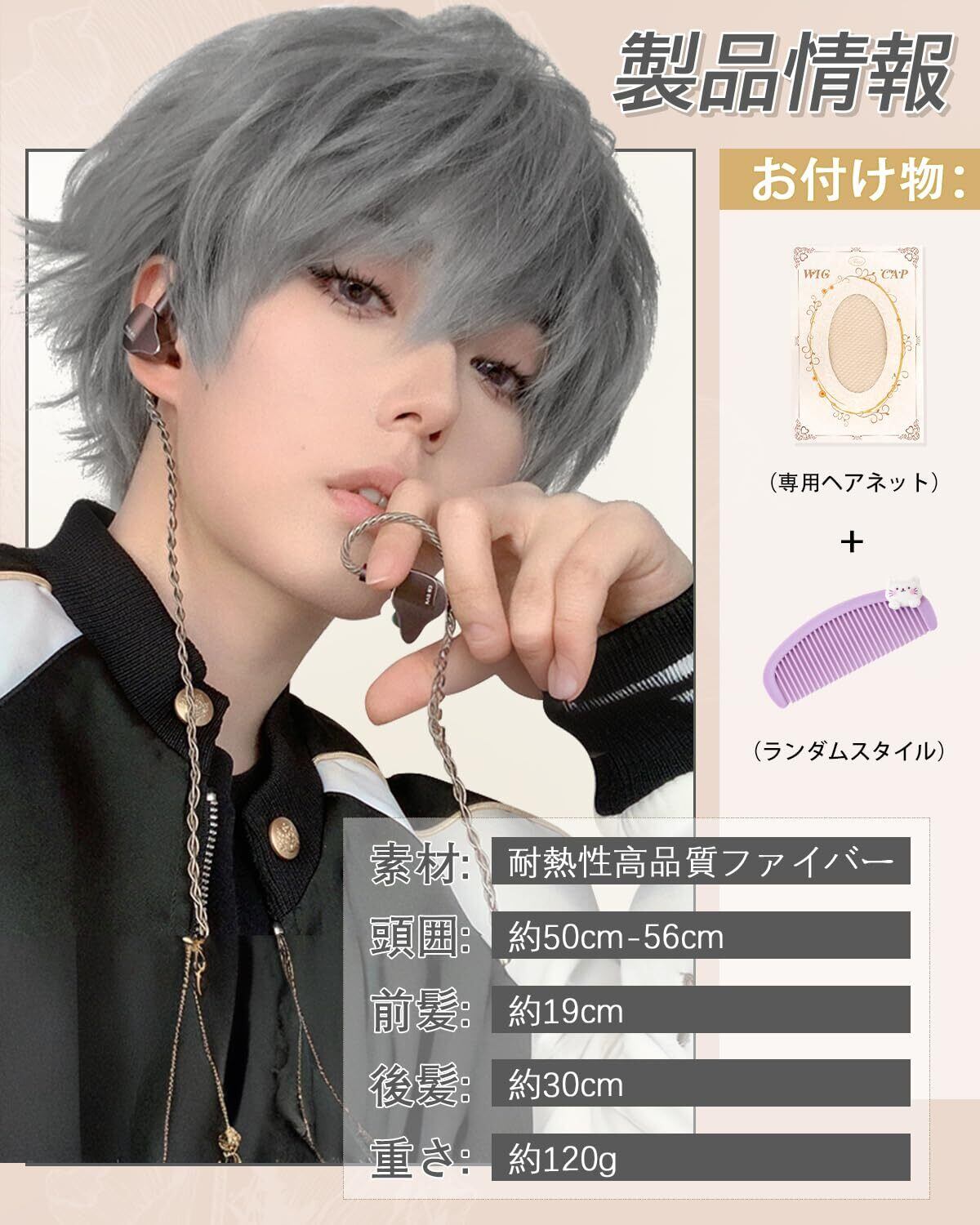 Sofeiyan ウィッグ メンズ かつら ショート 男装 黒 青 金 自然 小顔 耐熱 通勤 原宿 イメチェン イケメン コスプレ フルウィッグ カツラ ショタ cosplay 男女兼用 普段使い ウィッグネット付 (ダークグレー)