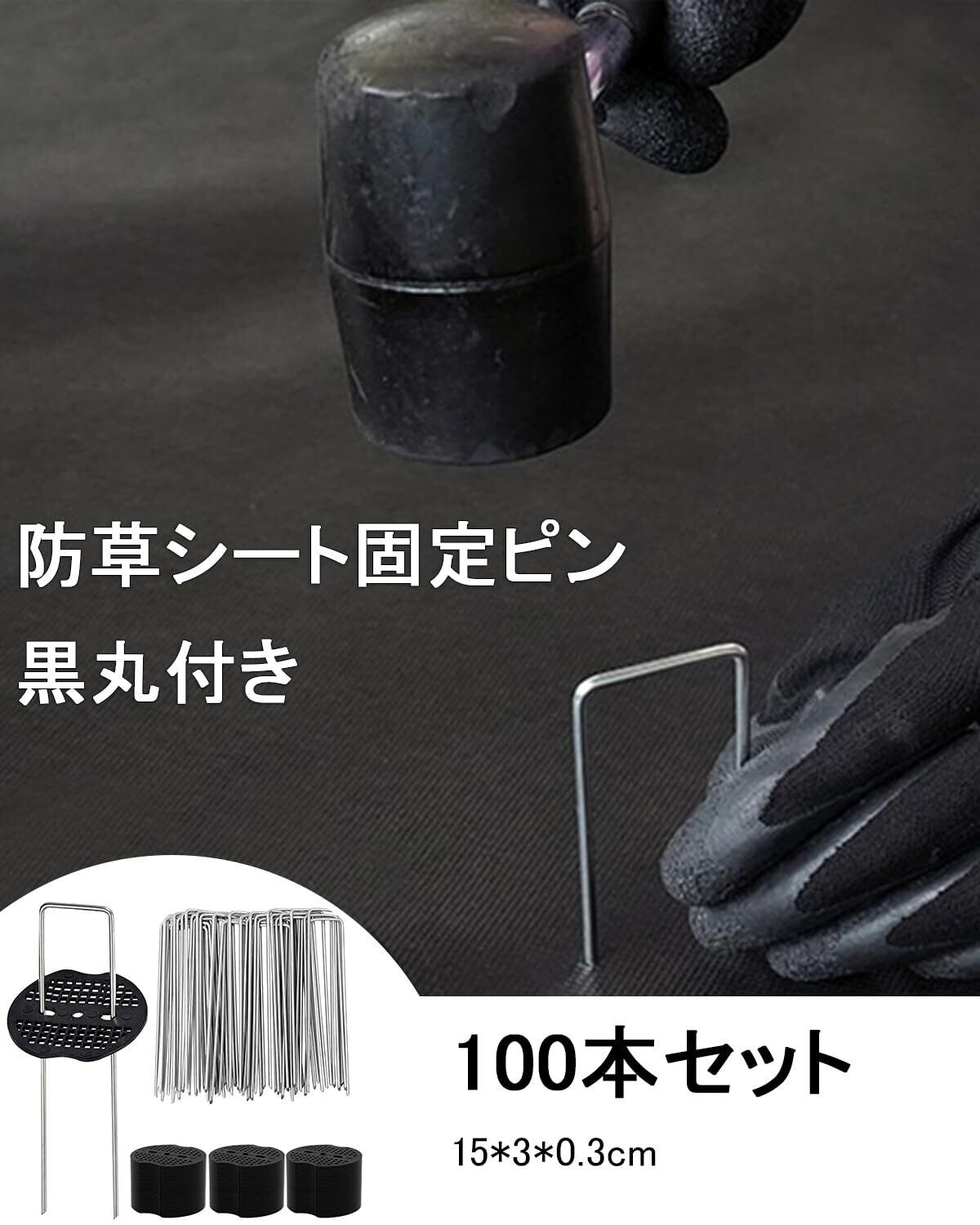 Yeeco 防草シート 固定ピン 100本セット Uピン杭 15cm 押さえピン 黒丸付き 人工芝 園芸用 農業用