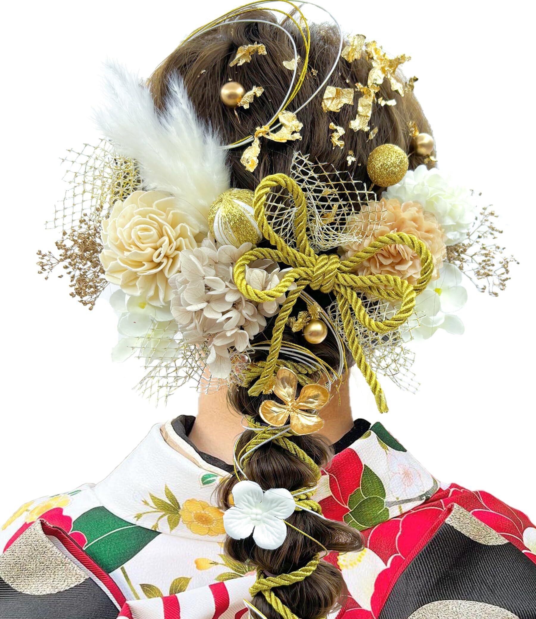 [JZOON] 髪飾り 10色 ドライフラワー 造花飾り 水引 紐 ヘアーアクセサリー 和玉 かすみ草 金箔 人気 和服 着物 振袖 袴 花 浴衣 成人式 七五三 結納 卒業式 入学式 結婚式 発表会 TC001