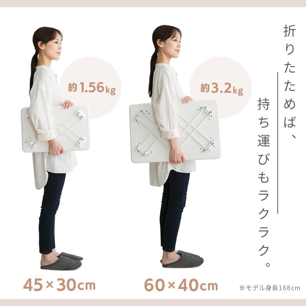 アイリスプラザ 折畳ローテーブル 45×30 高さ:19.4cm 省スペース 重さ1.56kgと軽量 ホワイト