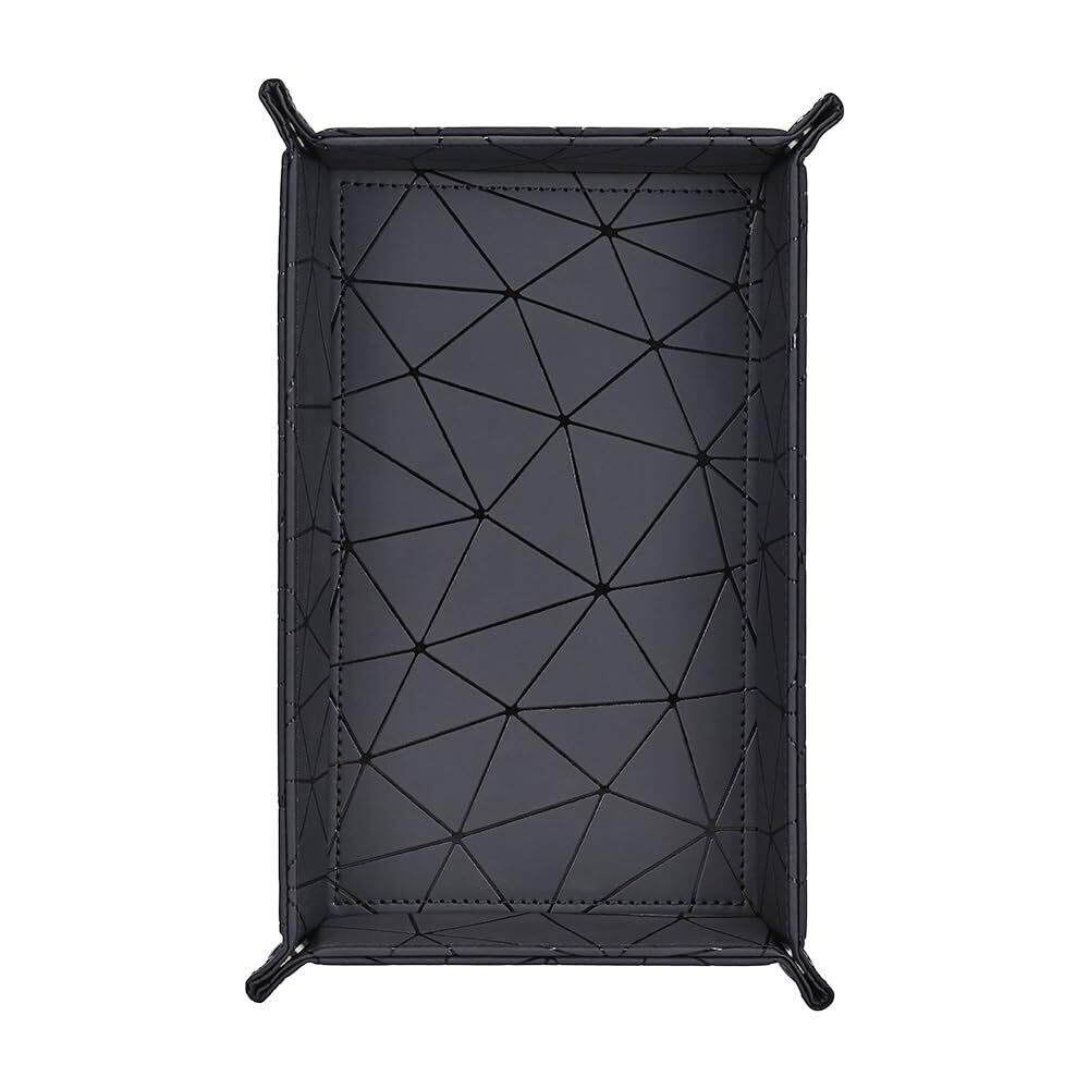 レザートレイ 高級本革風 アクセサリートレイ 4色展開 卓上 収納ボックス 折り畳み式 鍵 腕時計 スマホ メガネ置き リモコンラック 静音設計 インテリア (ダイヤ柄ブラック)