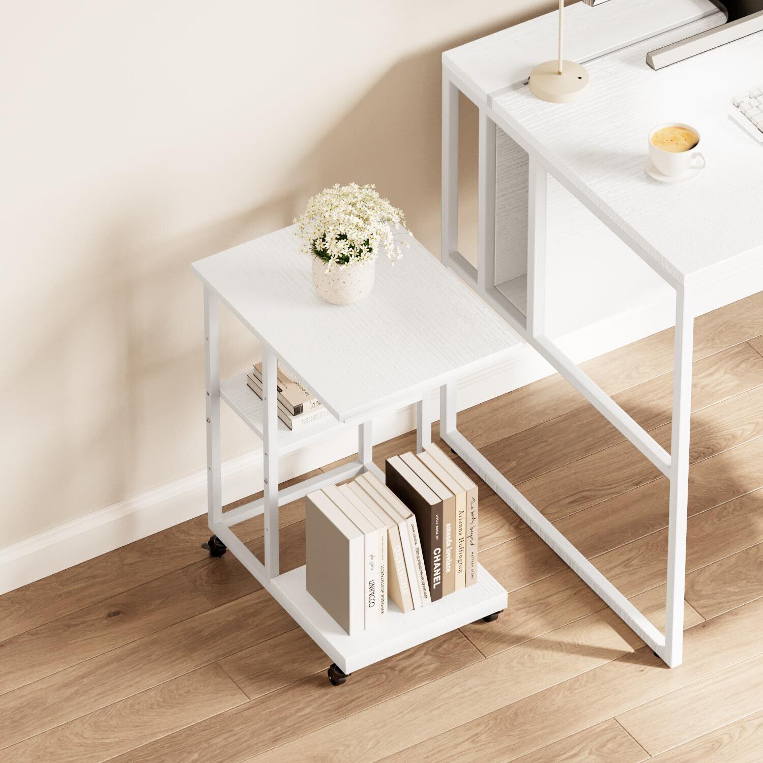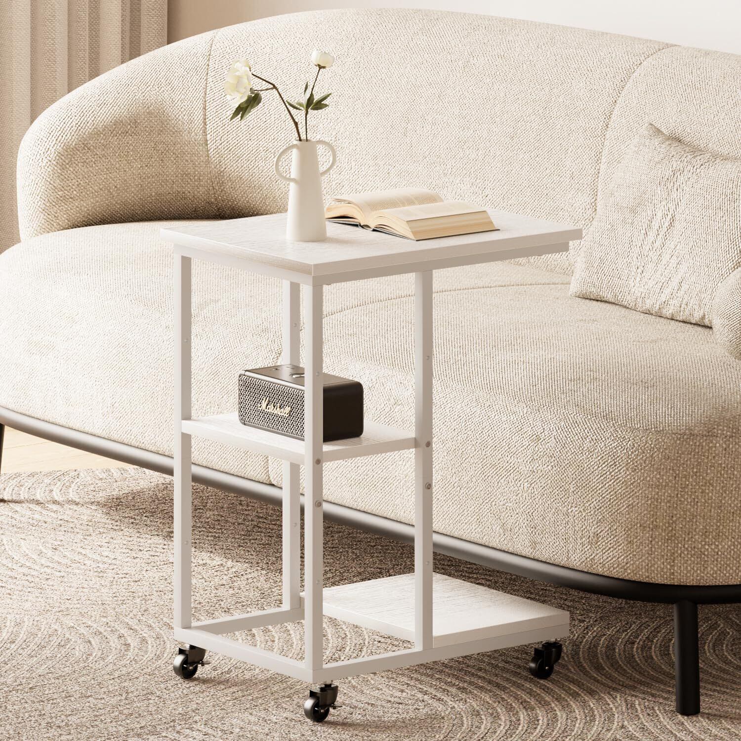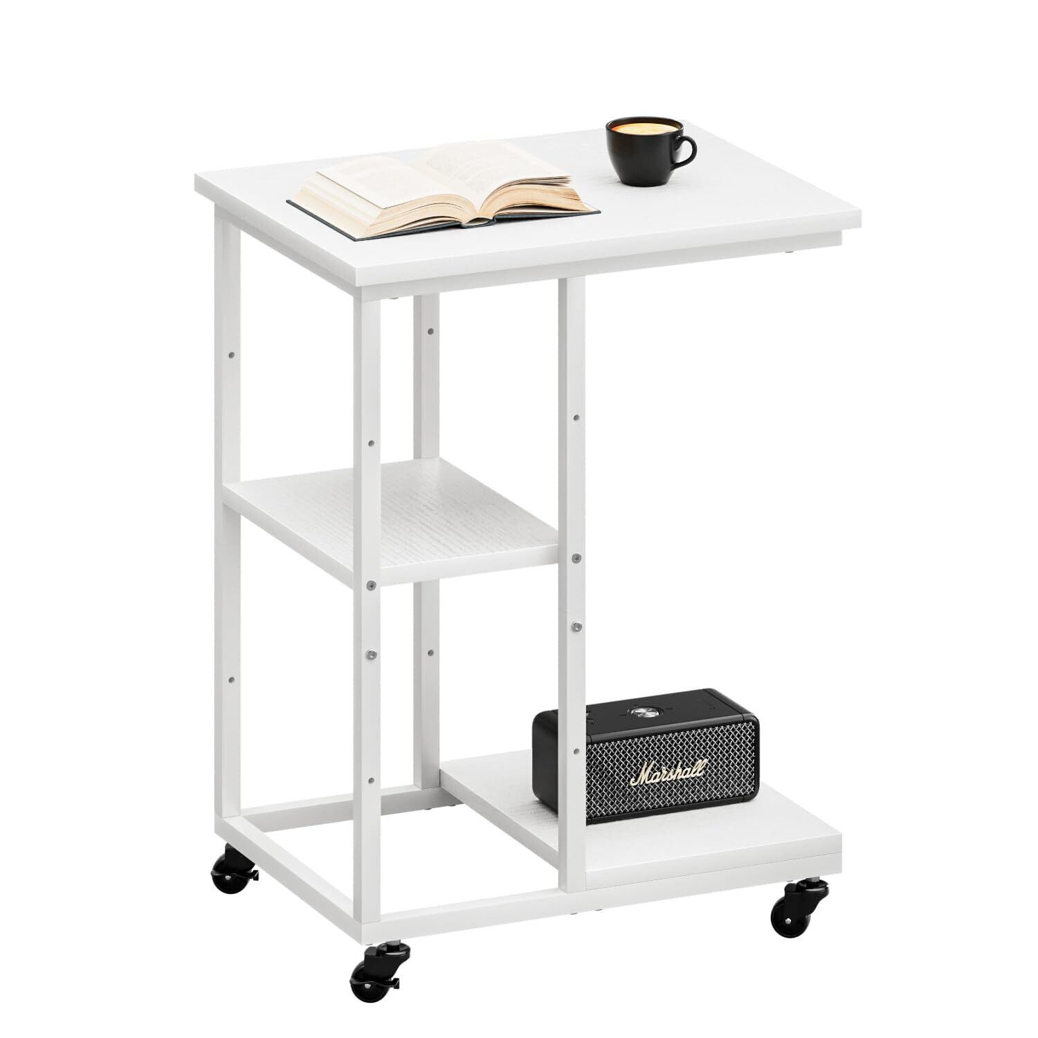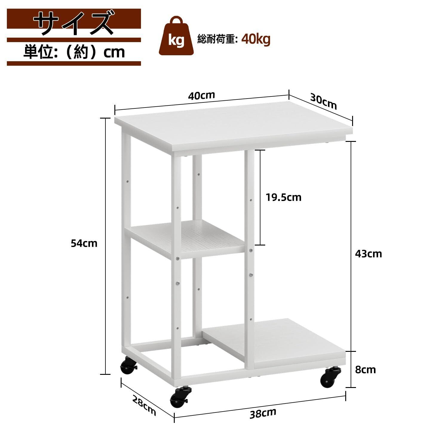 サイドテーブル キャスター付き コの字型 可移動ベッドテーブル テーブル ソファ横 ベッド横 スリム 組立簡単 幅40×奥行30×高さ54cm ホワイト