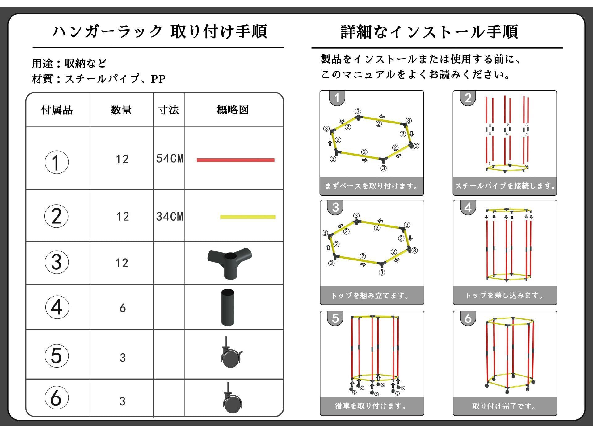 【設置場所について】 洋服を掛けて回転させるには1メートル以上の空間が必要です。事前に設置場所を計測してご検討ください。頑丈な仕様で少し重くなっております。畳や柔らかい床などはキャスターの跡が付く場合がありますので、床を保護してから設置してください。