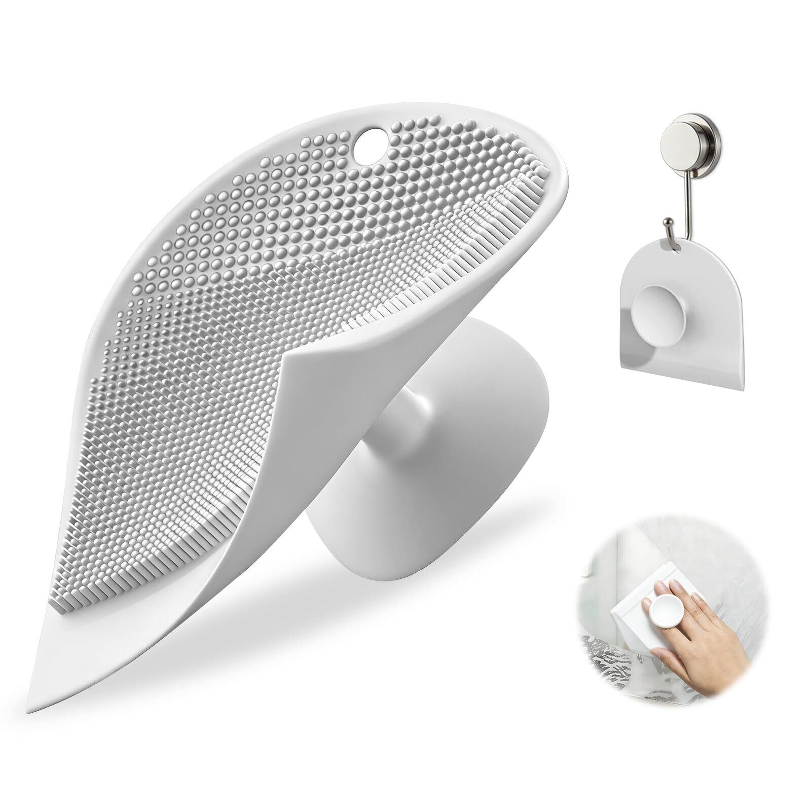 シリコンスクイージークリーナーブラシ - 水切り機能付きバスルームブラシ 吸盤収納 浮遊収納可能 浴室とキッチンに最適 (白1個入り)
