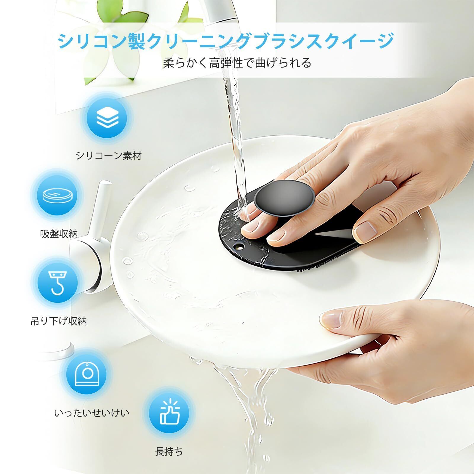 【安全で健康的な素材】高品質シリコーン素材を使用。安全で肌に優しく、柔らかく柔軟性があり、シンクの角や曲線にぴったりフィットし、徹底的に洗浄できます。