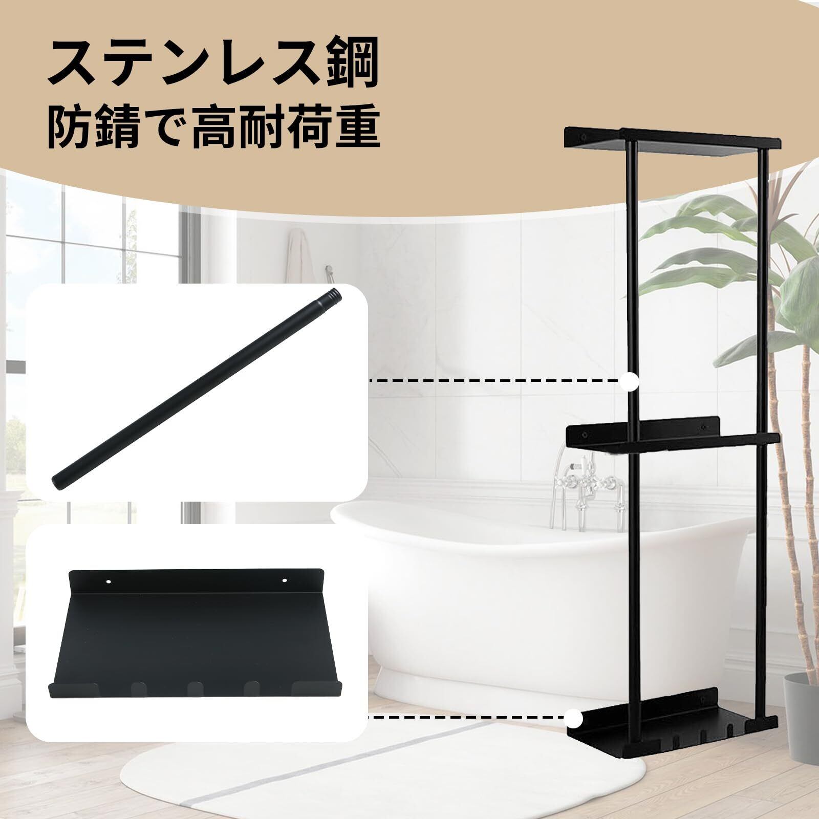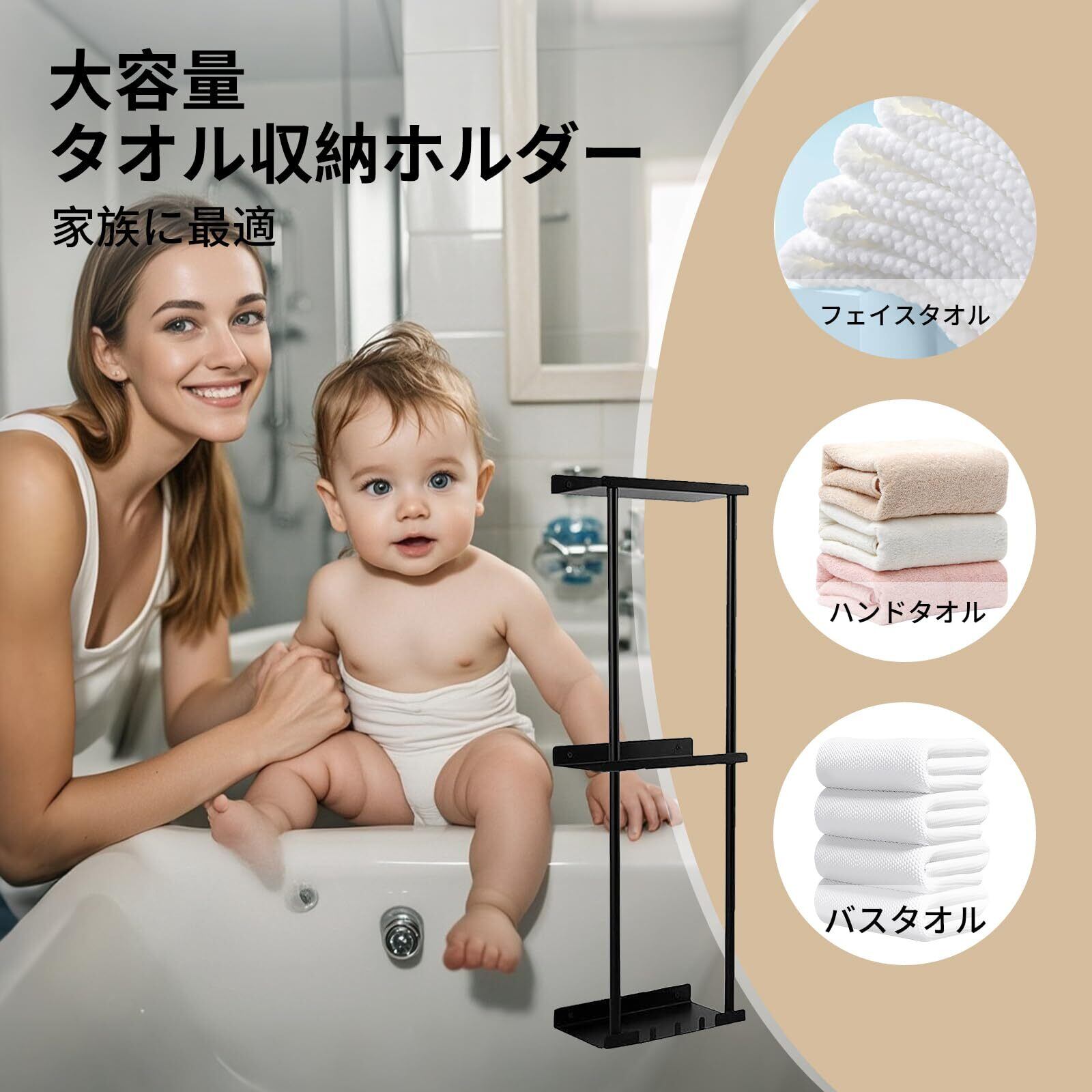 タオルラック タオルホルダー タオルハンガー 壁に取り付け タオル掛け 3段式 バスタオル置き タオル収納 バスルームタオル収納 黒 ブラック