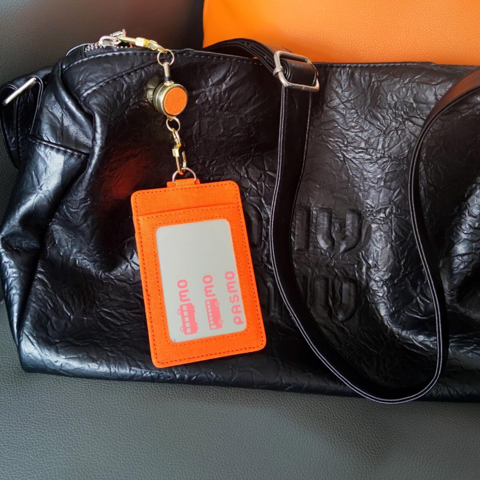 パスケース リール付き メンズ レディース 子供 男女兼用 縦 定期入れ リール 伸縮 両面 2枚 3枚 ic カードケース 社員証 本革 PUレザー 多色 (PU-ORANGE)