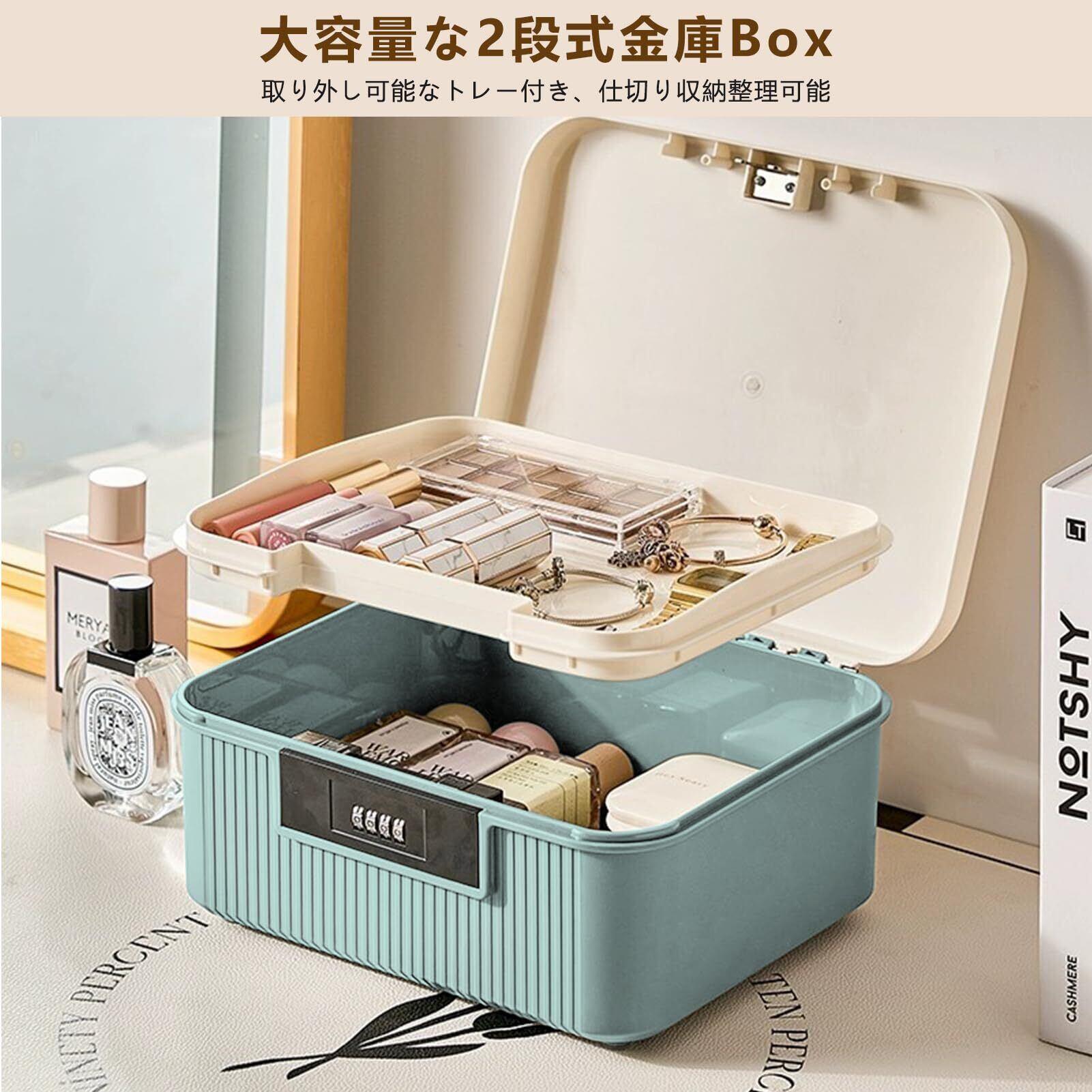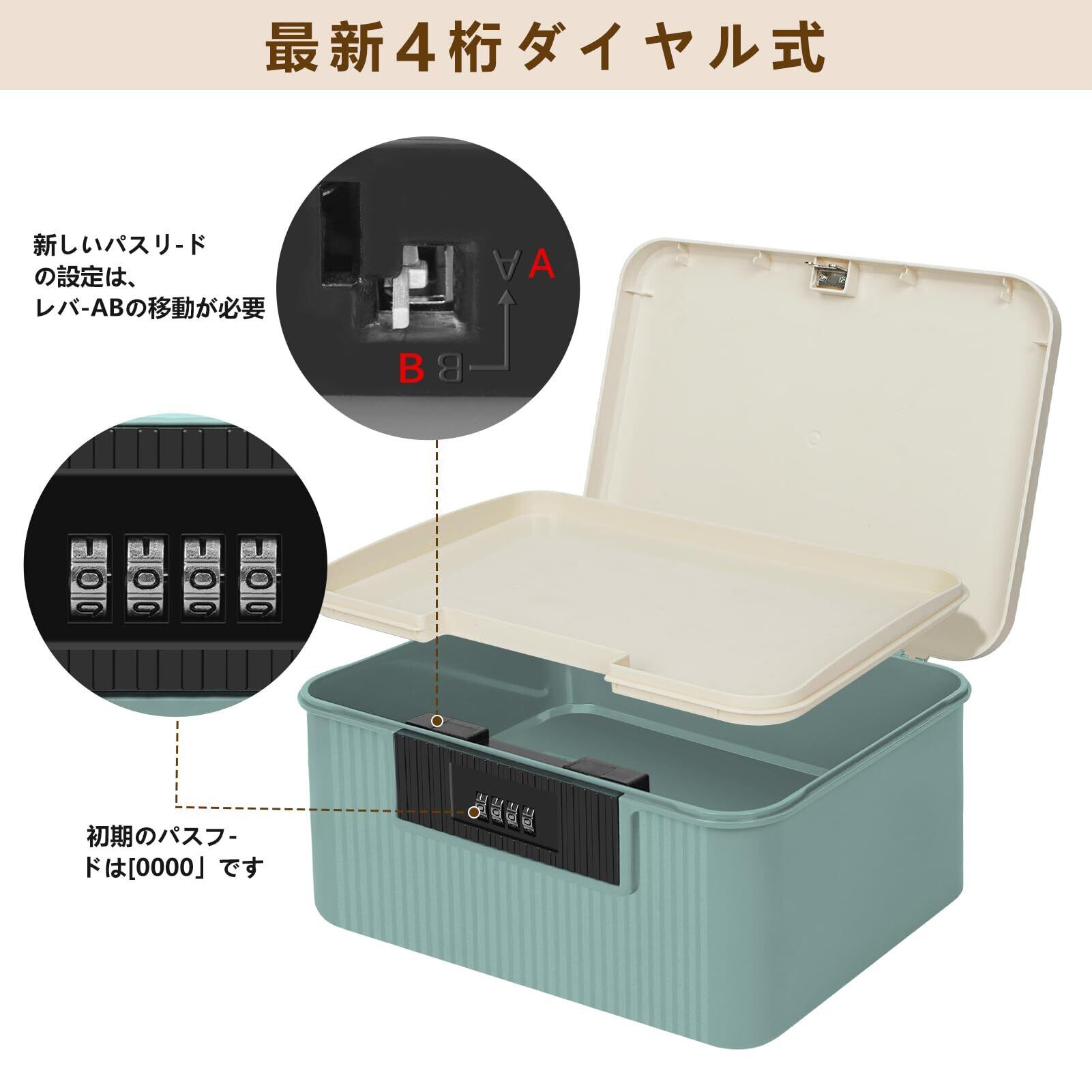 yazi 金庫 家庭用 小型 ダイヤル式 コンビネーションロック 収納ボックス 大容量2段式 9L ミニ金庫 プラスチック製 貯金箱 キャッシュ・重要書類・銀行カード 貴重品入れ (ベージュ, M)