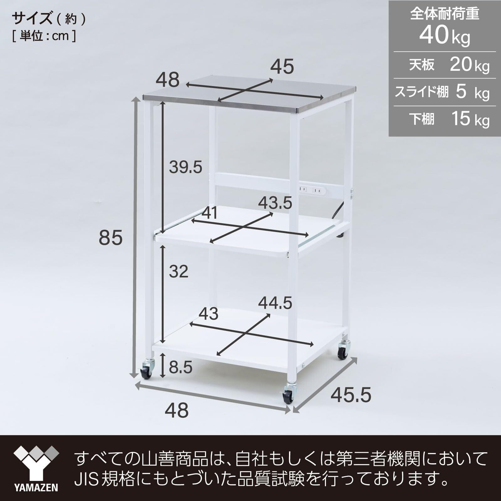山善(YAMAZEN) レンジラック キッチンワゴン レンジ台 スライド棚 2口コンセント キャスター付き キッチンラック (ステンレス天板耐熱温度 : 200度) 幅48×奥行45.5×高さ85cm 家電 収納 キッチン 組立品 ホワイト RRRS-4845(WH)