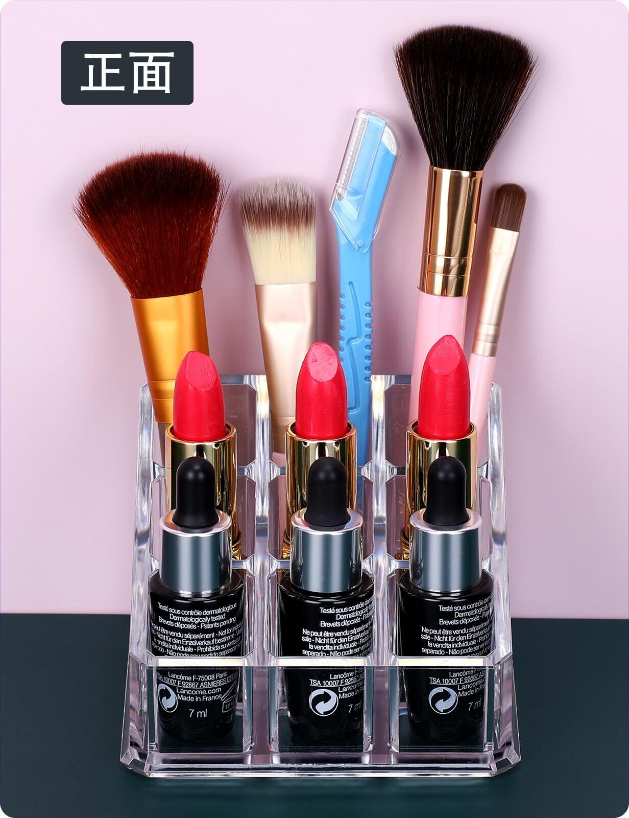 9スロットの口紅オーガナイザー:小型でコンパクトなこのオーガナイザーは、最大9本の美容アイテムを整理して収納できます。口紅、ミニグロス、スリムタイプのマスカラ、ロールオン香水、トラベルサイズの製品などに最適です。