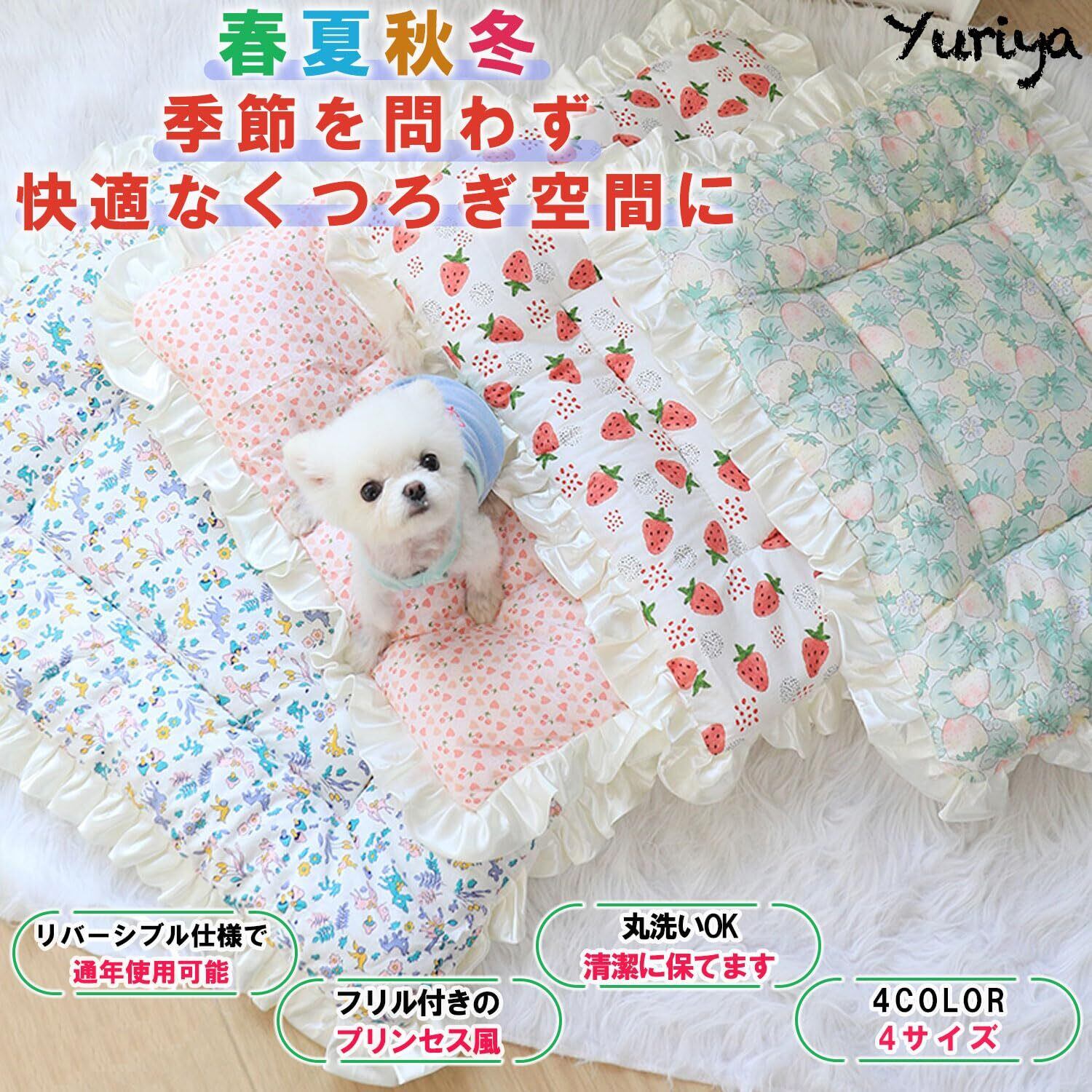 ペット マット 猫 ベッド フリル付き ふわふわ フリース 綿 リバーシブル ふかふか 暖かい 柔らかい 洗える 犬 ペット用 クッション 布団 防寒 寒さ対策 通年 イチゴ 24*35