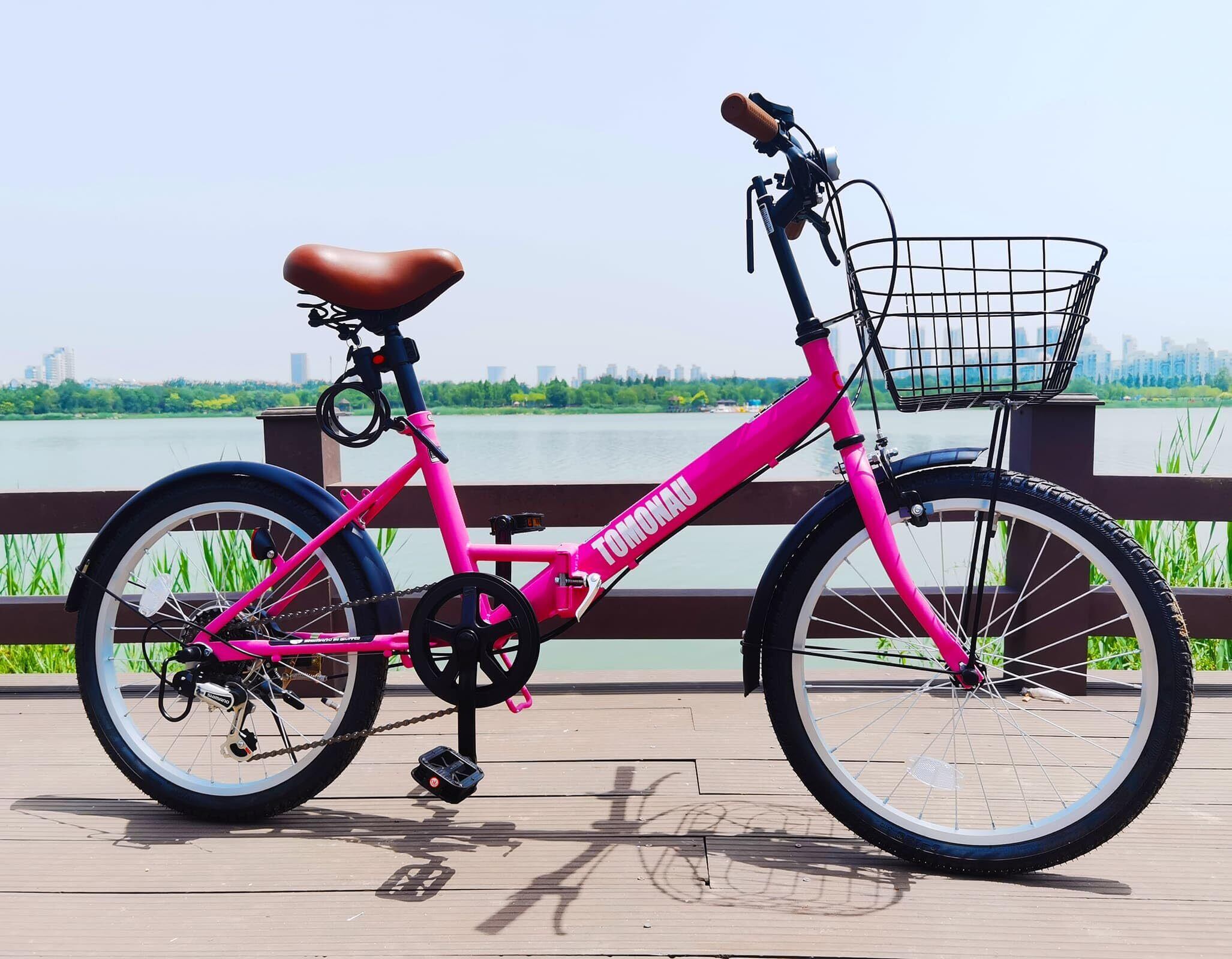 折り畳み自転車 折りたたみ自転車 20インチ シマノ6段変速 カゴ ワイヤー錠 ライト付き 通勤 通学 街乗 前後泥除け装備 ハンドルの高さ調節できる 小径車 ミニベロ