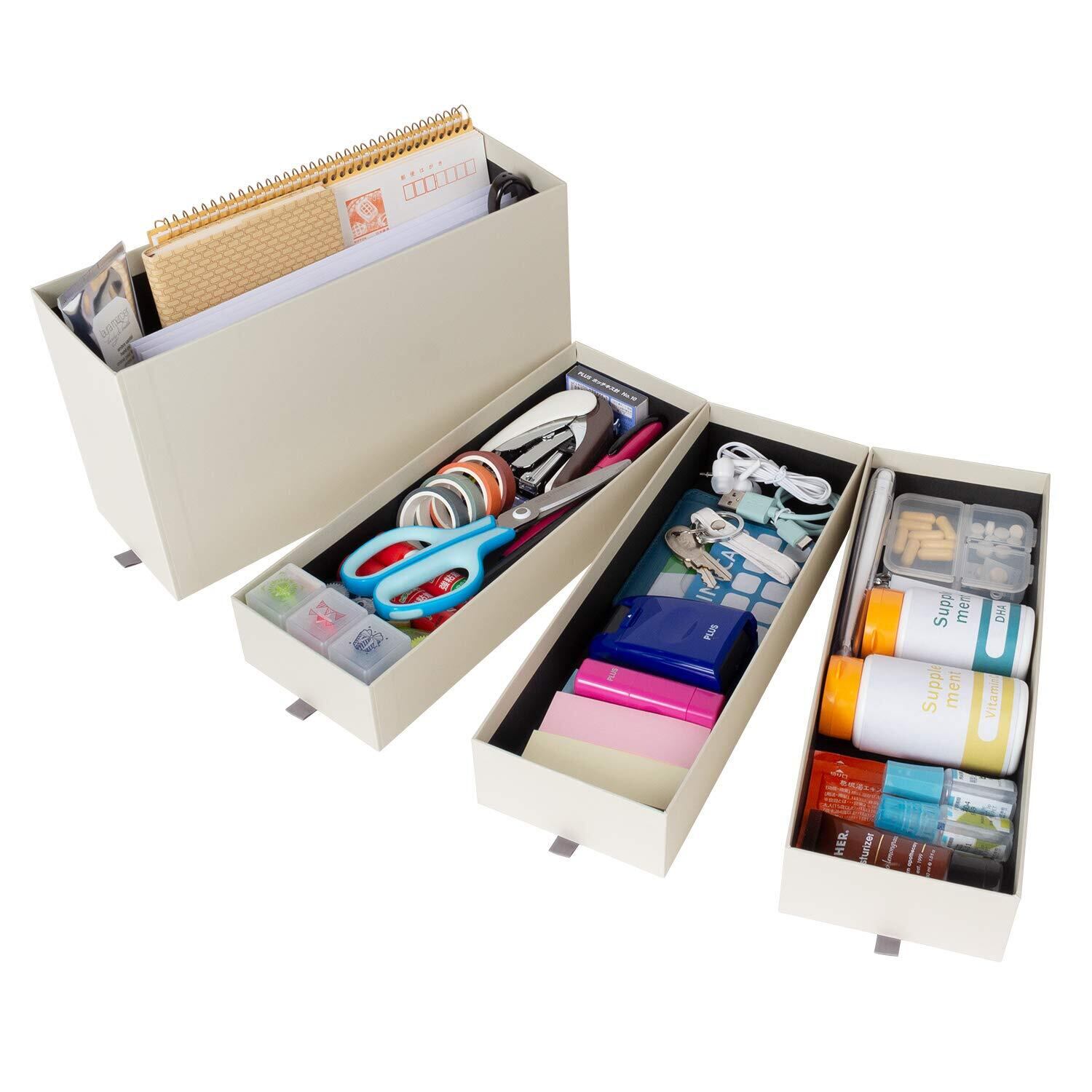 お部屋のこまごま、まとめて簡単整理。しっかりとした紙製収納ボックス。