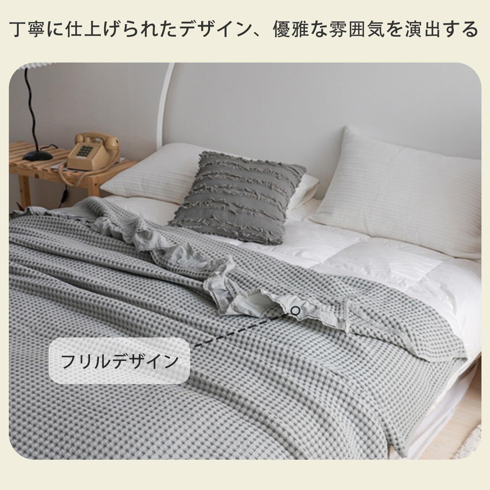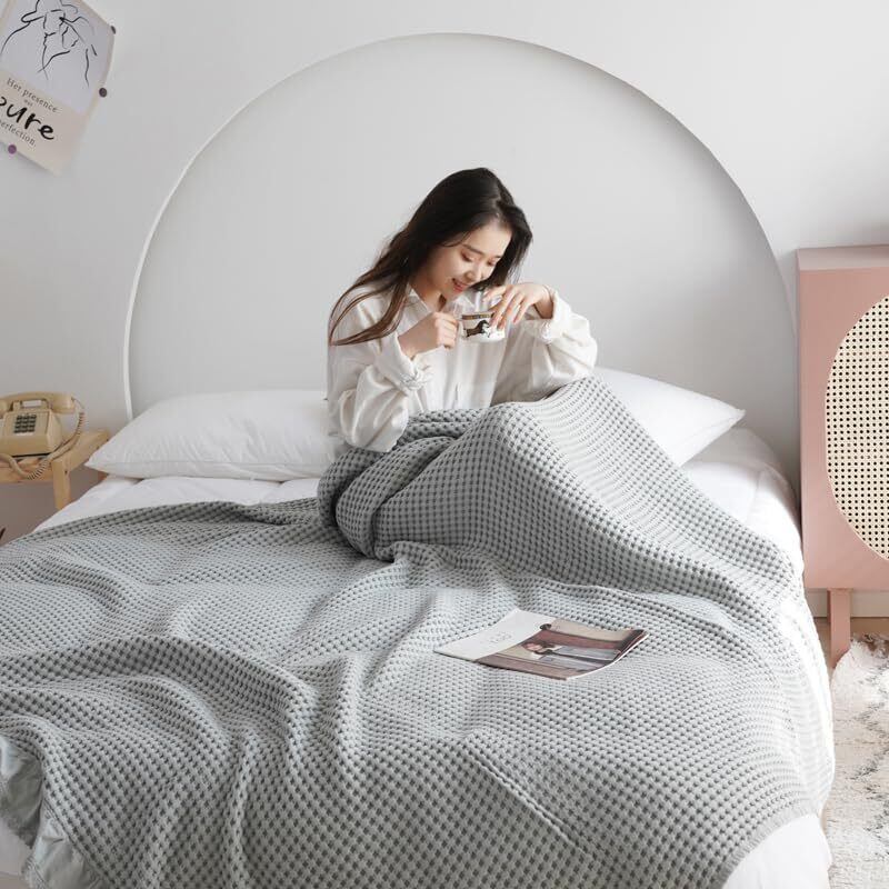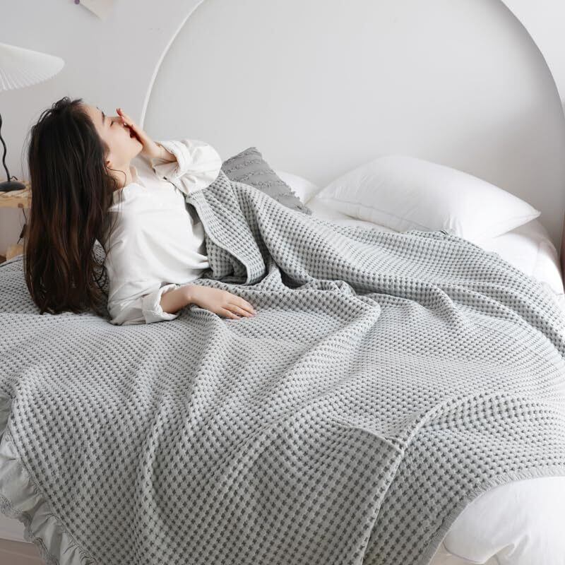 songlibin ワッフルケット タオルケットダブル フリル 綿 冷房対策 ブランケット 毛布 寝具 ワッフル織 カバー キルティング ケット グレー ダブル 200*230cm