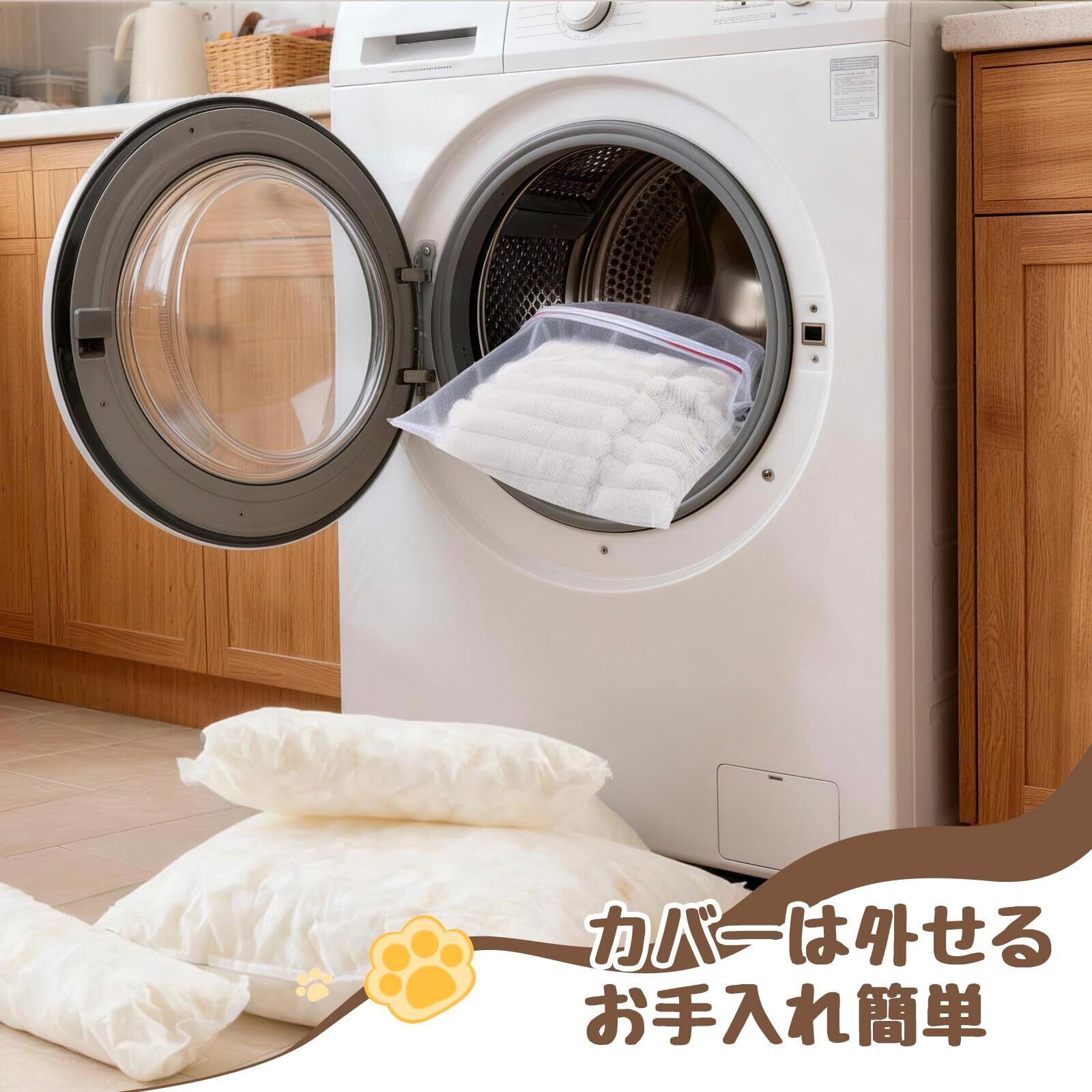 【お手入れの便利さと注意点】カバーとスポンジは簡単に取り外し可能で、お手入れが簡単です。洗濯機で洗う際は、必ず洗濯ネットに入れ、デリケートコースで洗ってください。これにより清潔さを保ちつつ、長くお使いいただけます。また、真空圧縮のため、開封時に商品がふにゃふにゃしている場合がありますが、これは正常な状態です。スポンジは48時間で元に戻りますので、ご安心ください。