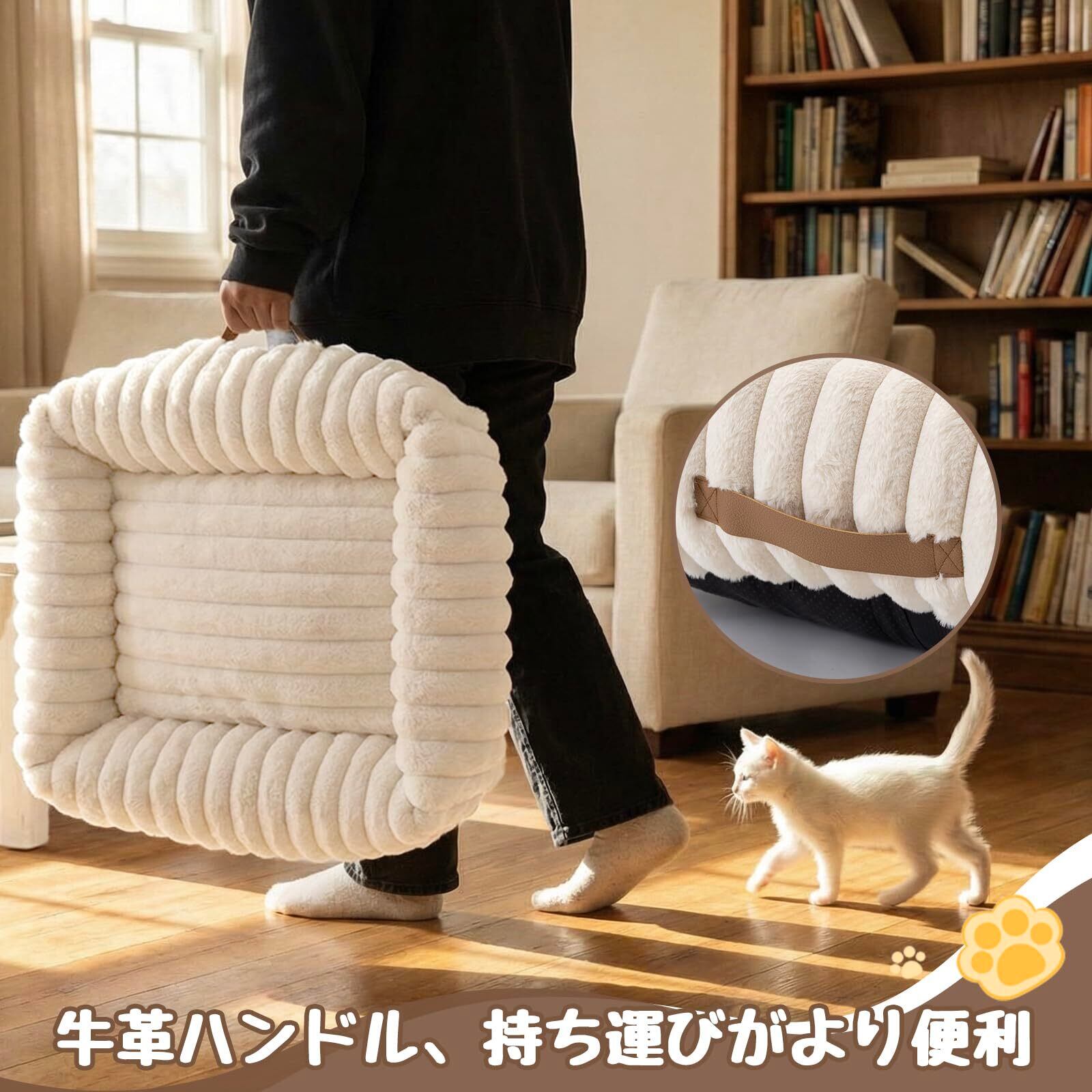 猫 ベッド ペットベッド 洗える 犬用ベッド 洗える 猫あったかベッド 取り外し可能 ふわふわ 保温 暖かい 寒さ対策 柔らかい 外径サイズ約68L*56W*20H アイボリー