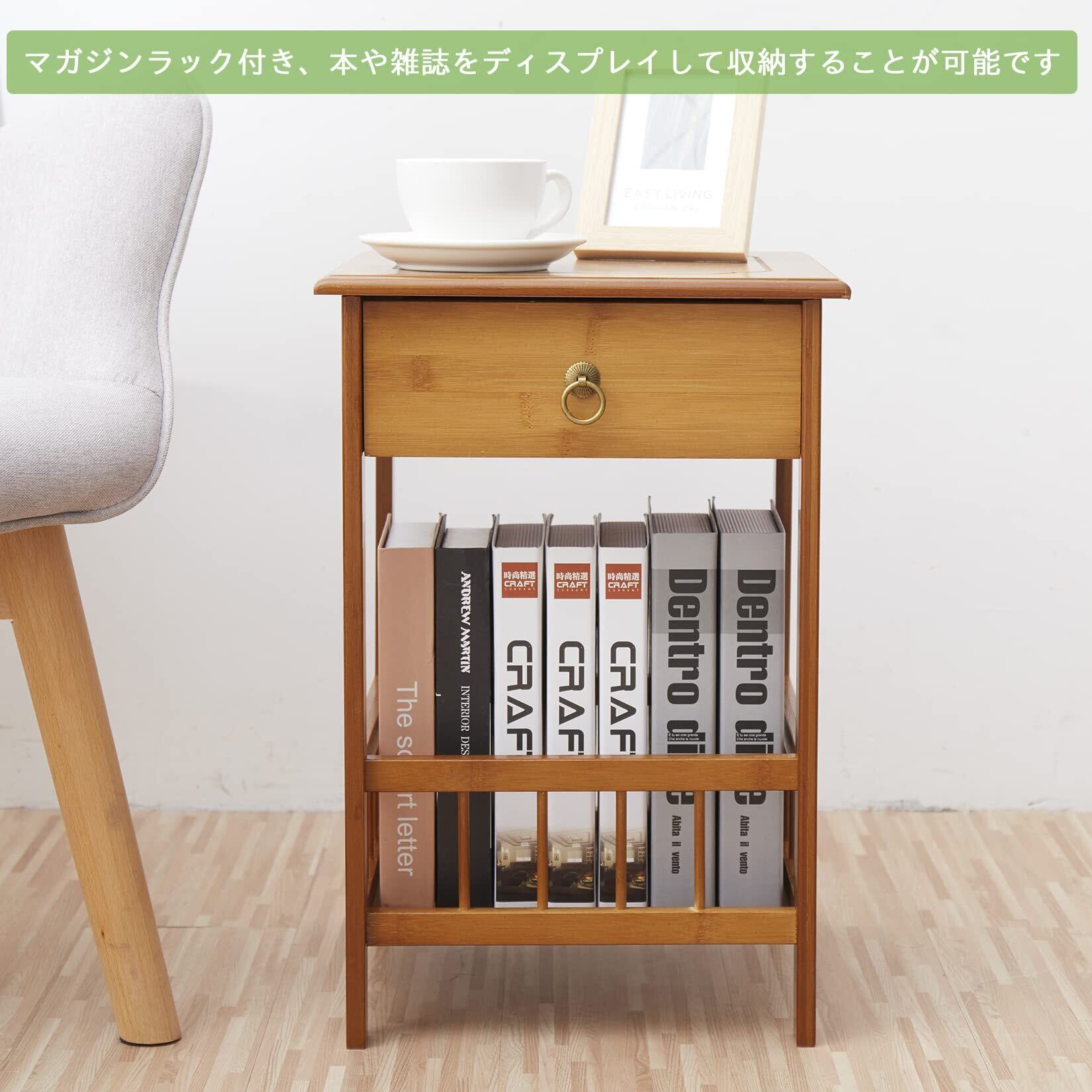 Susire サイドテーブル ベッド横 ナイトテーブル 低め おしゃれ 収納付き 引き出し付き ミニ アンティーク 木製 寝室 ソファー 小さい 加湿器を置く台 高さ50cm