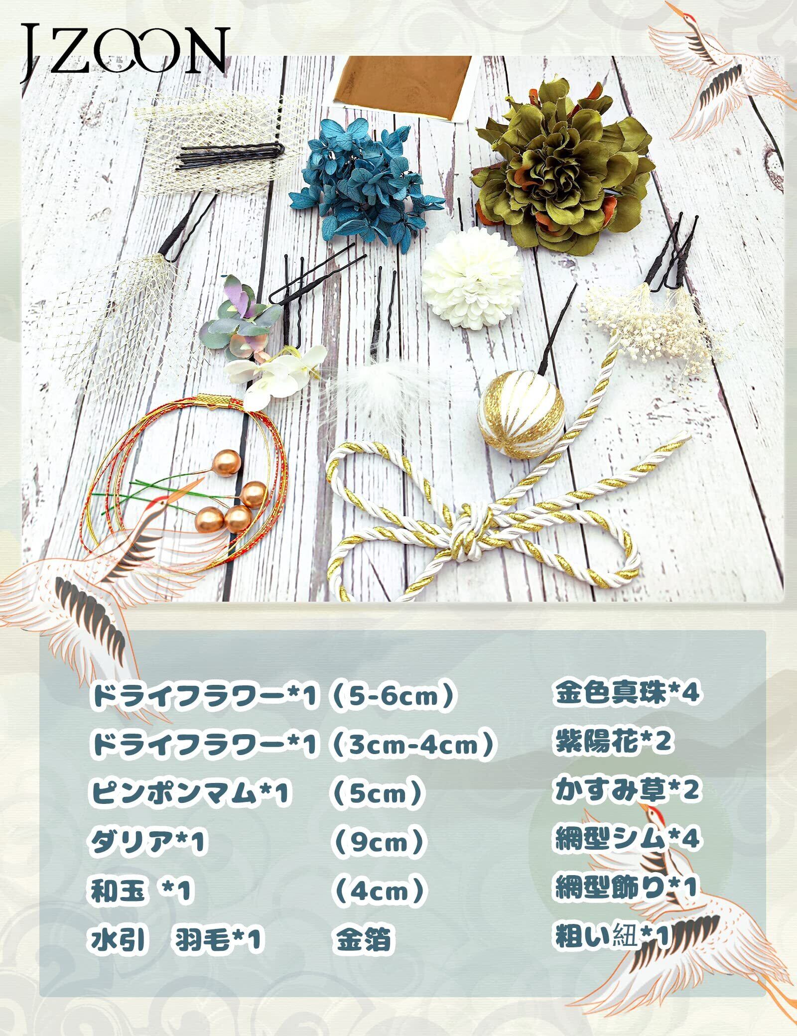 [JZOON] 8色展開 ドライフラワー 髪飾り ダリア 造花飾り 和玉 赤 ヘアアクセサリー 成人式 ゴールド 水引 ヘッドパーツ あじさい 振袖 着物 卒業式 七五三 浴衣 袴 結婚式 かすみ草 和装 造花 手作り 専用ケース付き