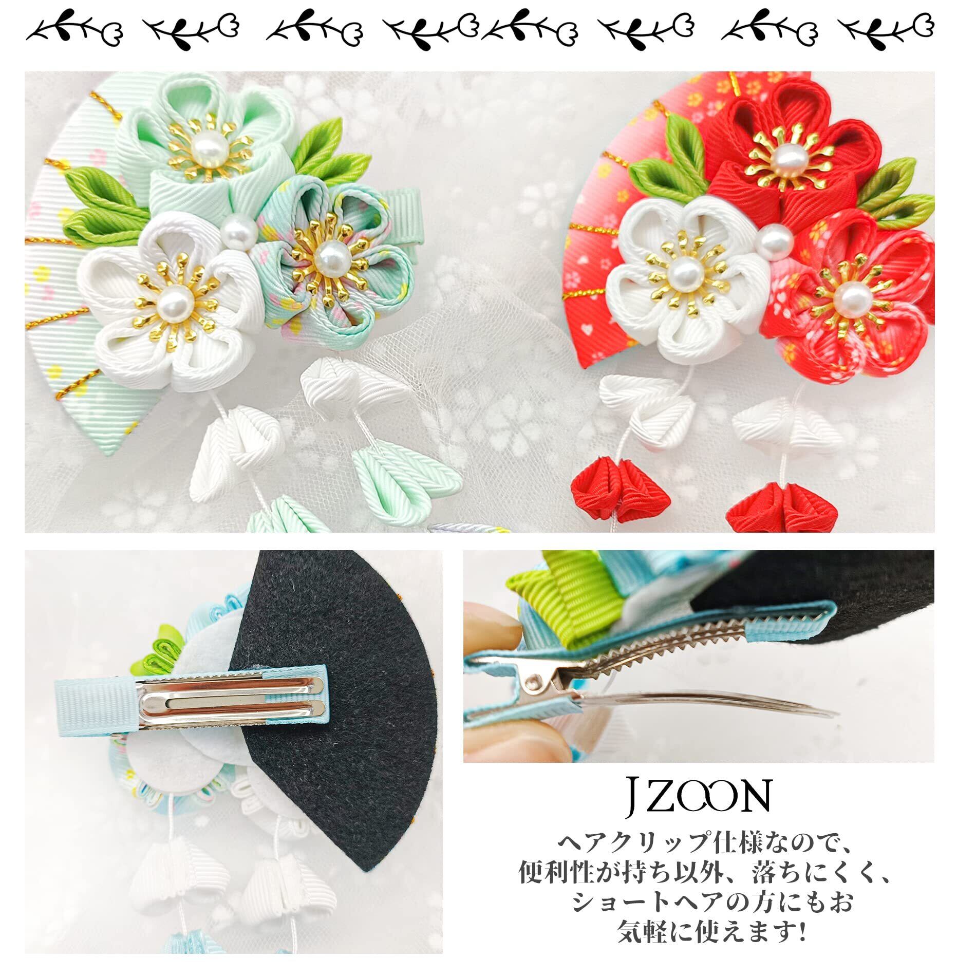 [JZOON] つまみ細工 髪飾り 七五三 卒業式 成人式 浴衣 袴 着物 振袖 和装 花 結婚式 鈴付き 手作り 赤 青 紫 ピンク グリーン 黄 6色