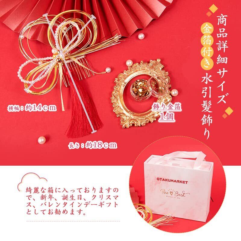 【髪飾り用途】水引きの髪飾りです。成人式の髪飾りは前撮りに最適。夜会巻き、アップヘア、サイドアップ、お団子、編み込みなど人気のまとめ髪の補助やアクセントにオススメです。大人の方は結婚式、パーティー、謝恩会、成人式、卒業式など華やかなお席の和装、振袖姿や浴衣のコーディネートにぴったりします。お正月、お祝い事、桃の節句、七五三、卒園式などにオススメです。