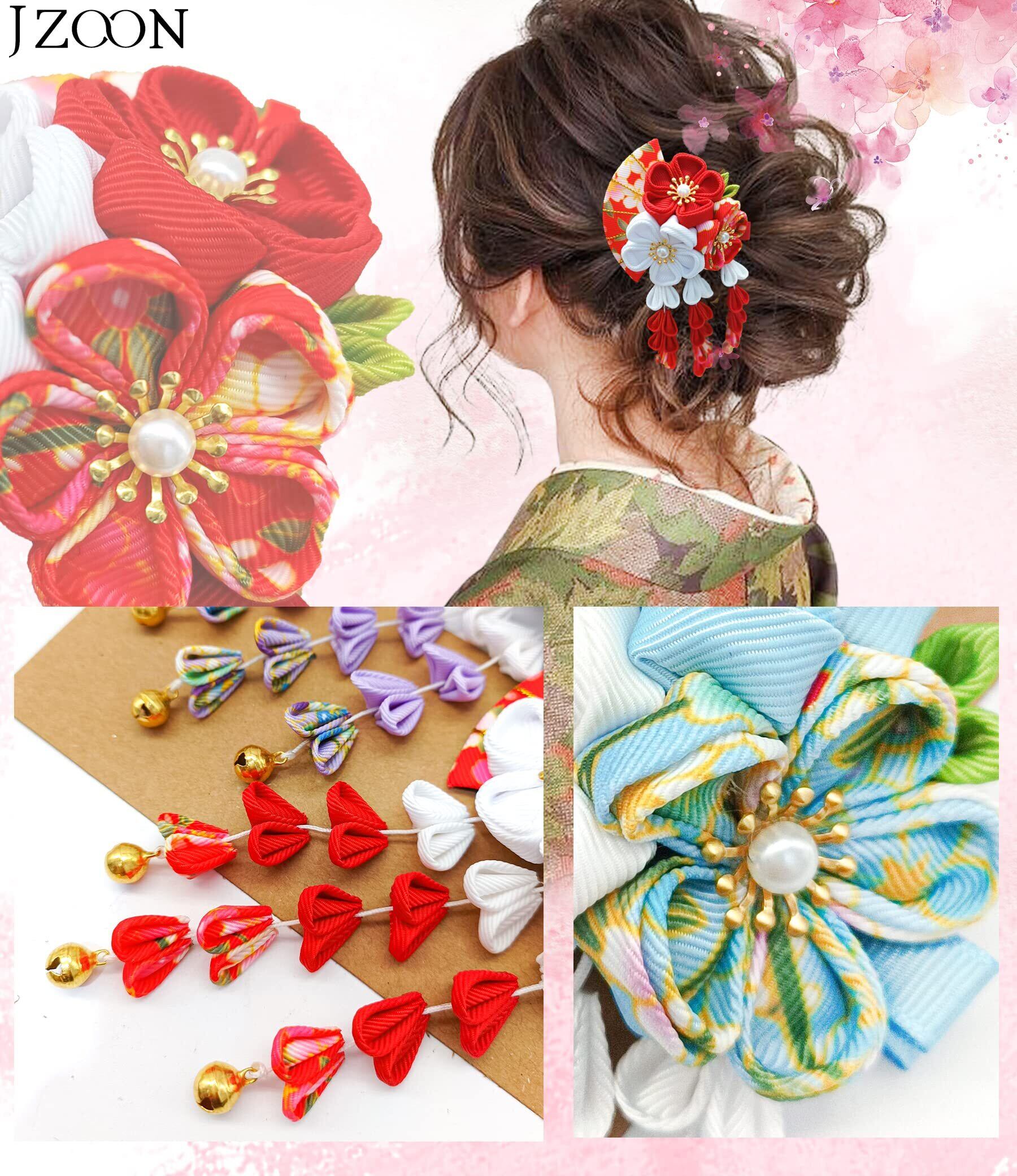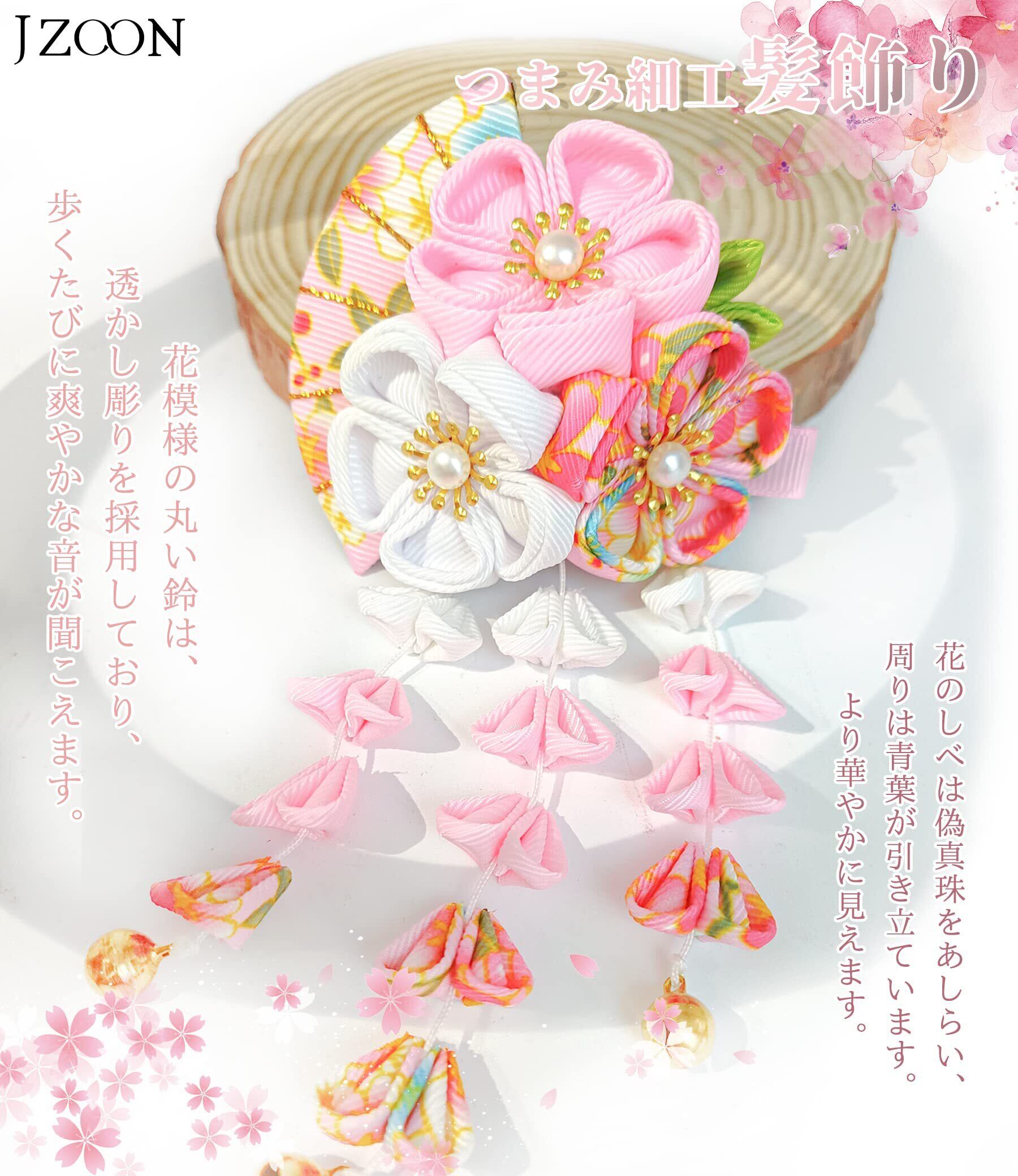 [JZOON] 髪飾り 成人式 七五三 浴衣 袴 着物 振袖 和装 つまみ細工 花 卒業式 結婚式 鈴付き 手作り 赤 青 紫 ピンク グリーン 5色