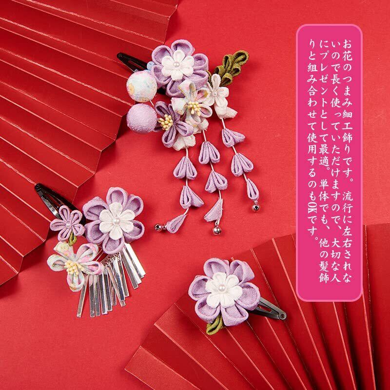 [OTAKUMARKET] 七五三 髪飾り 成人式 3点セット 振袖 浴衣 和装 つまみ細工 髪 飾り 着物 髪飾り 袴 卒業式 結婚式 鈴付き 三歳 七歳 女の子 ガールズ 5カラー