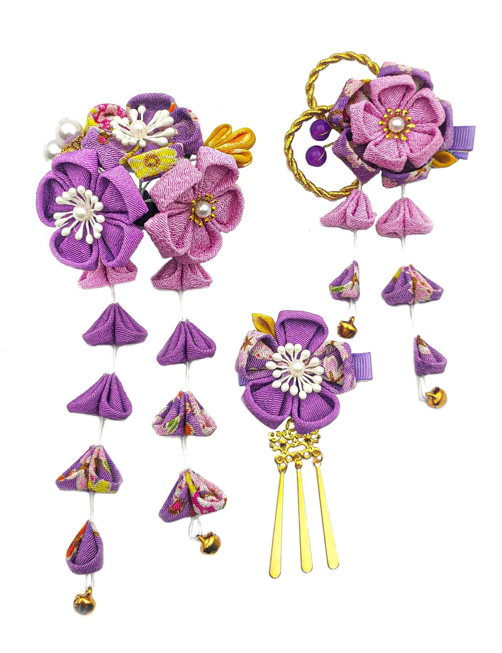 髪飾りは顔に一番近い部分の装飾品として、お召しになる着物の柄や小物の雰囲気にあわせてお選びいただけると着こなしがまとまります。ヘアスタイルを彩り、つまみ細工のJZOON髪飾り3点セットです。4色展開ので、お服の色に合わせ、ご自由に選択いただきようお願い申し上げます。