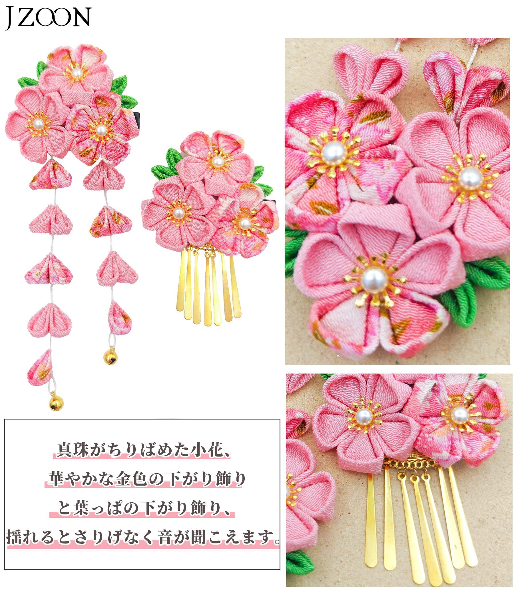 [JZOON] 七五三 髪飾り つまみ細工 成人式 七五三 浴衣 袴 着物 振袖 和装 花 卒業式 結婚式 桜 鈴付き 753 六色 レインボーカラー 手作り H2700