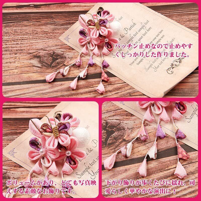 OTAKUMARKET 七五三 髪飾り 成人式 振袖 浴衣 和装 つまみ細工 髪 飾り 着物 髪飾り 袴 卒業式 結婚式 セット 三歳 七歳 女の子 ガールズ 5タイプ 4カラー (Bタイプ (ピンク))