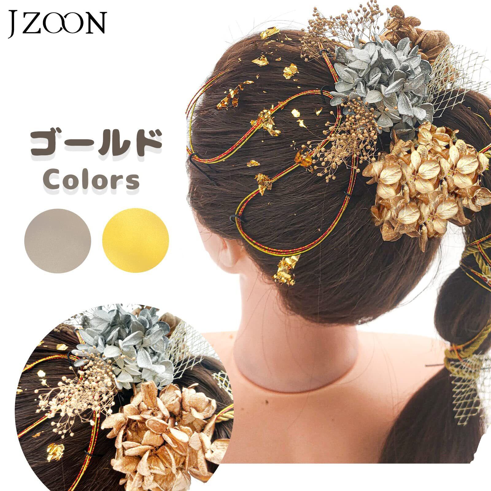 [JZOON] 髪飾り 水引 紐アレンジ ロープ ゴールド シルバー ドライフラワー プリザーブドフラワー ヘアアクセサリー 成人式前撮り 振袖 着物 和装 卒業式 結婚式 花嫁 ヘアアレンジ