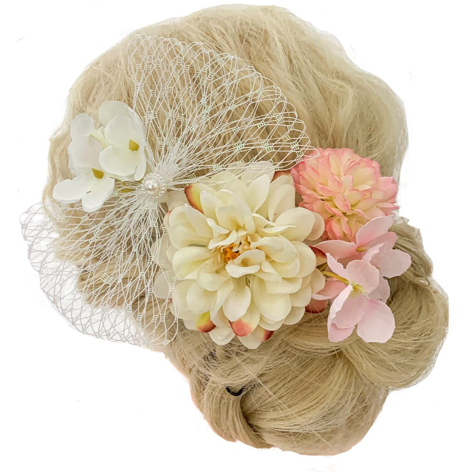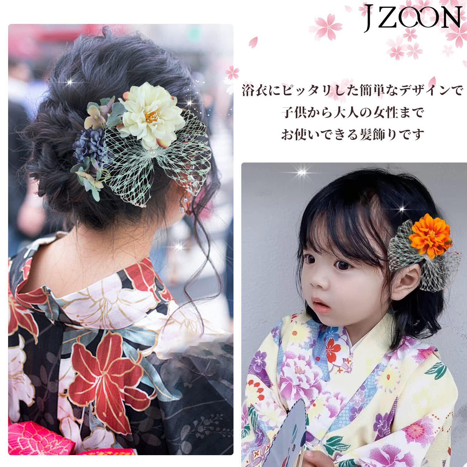 [JZOON] 髪飾り メッシュリボン 着物 和装 高級造花 振袖 七五三 浴衣 結婚式 成人式 卒業式 袴 子供 Uピン