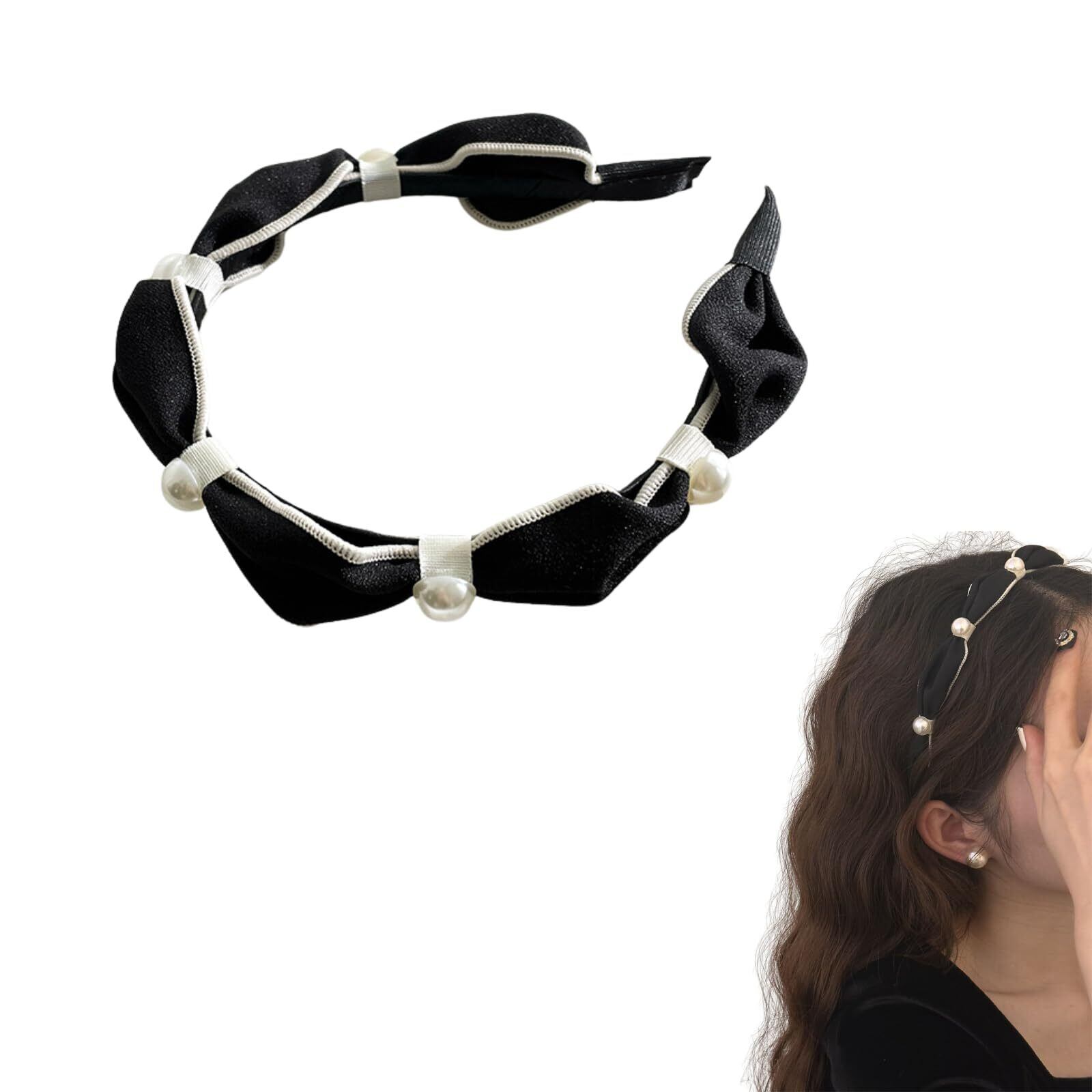 EZ PEACH カチューシャ 結び シンプル リボン パール 細め ヘッドアクセ ヘア デイリー ヘアアクセサリー カチューシャ パールカチューシャ 可愛い 前髪 髪留め 髪飾り 結婚式 発表会 入学式 (蝶結び/Black02)