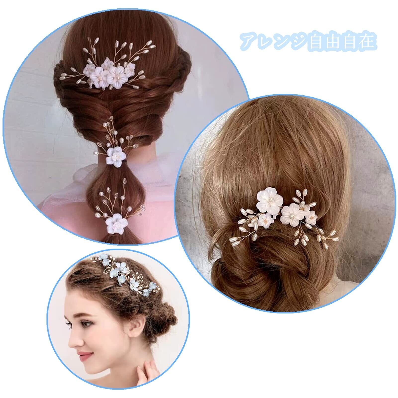 ヘッドドレス ウェディング 髪飾り 3点セット 花嫁 ブライダル コーム Uピンフラワー 花モチーフ ヘアピン かんざし 和装にも ヘッドアクセサリー 結婚式 披露宴 二次会 卒業式 入学式 パーティー ダンス 和装 撮影 (タイプB-ホワイト)