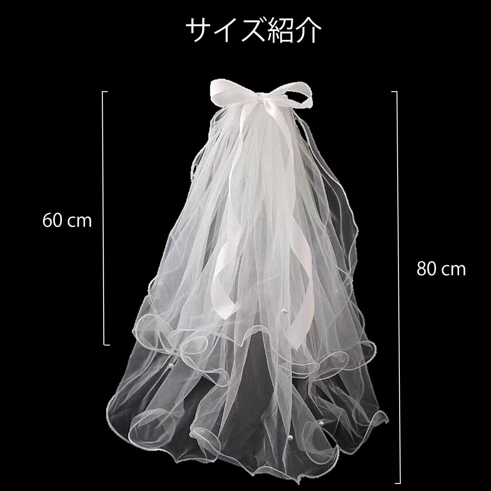 ZHEJIA ウェディングベール ベール ヴェール レディース ヘアアクセサリー 2層ウエディングベール ウエディングドレスの飾り用品 蝶結び付き 写真 かわいい 花嫁 結婚式 60-80cm